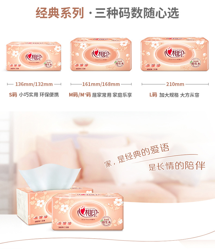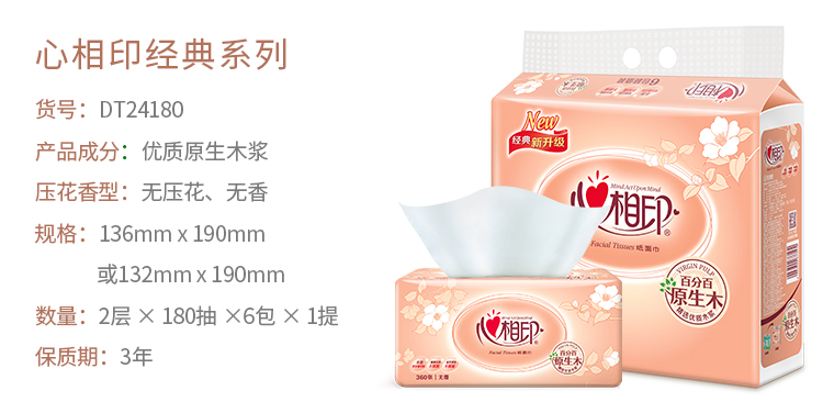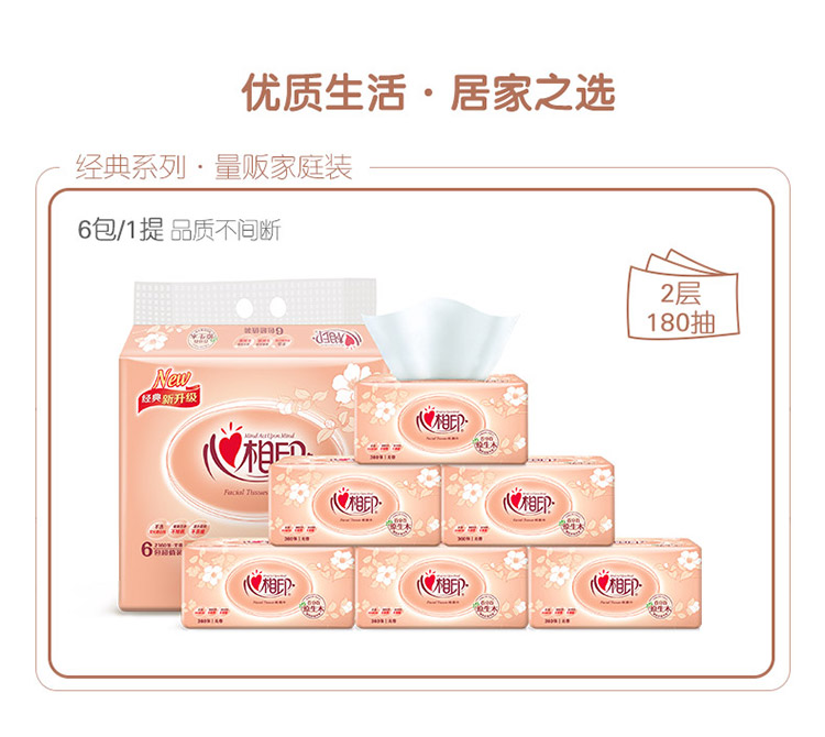 - 商品名称:心相印抽纸 经典系列 2层180抽面巾纸*6包(小规格/新老包装随机发货)软抽