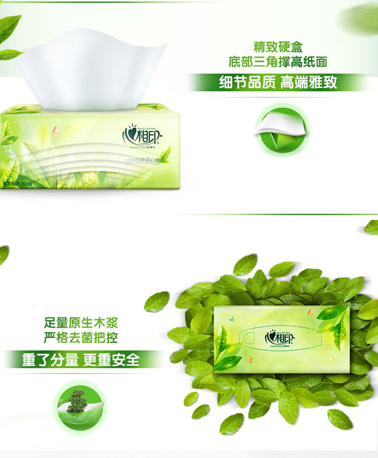 - 商品名称:心相印抽纸 茶语系列 盒抽2层200抽面巾纸*3盒