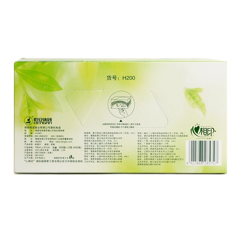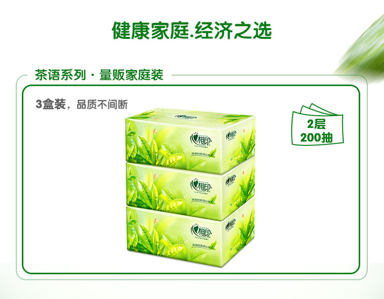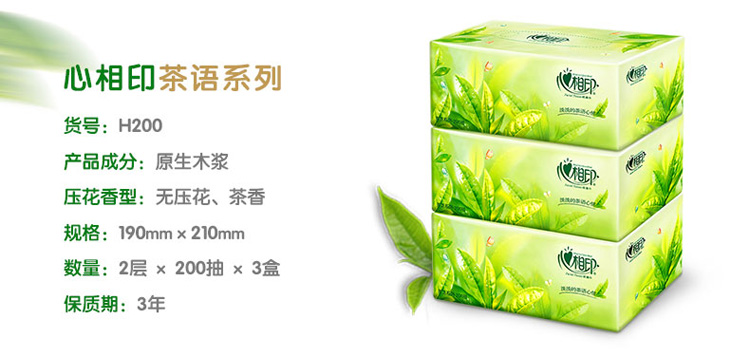 - 商品名称:心相印抽纸 茶语系列 盒抽2层200抽面巾纸*3盒