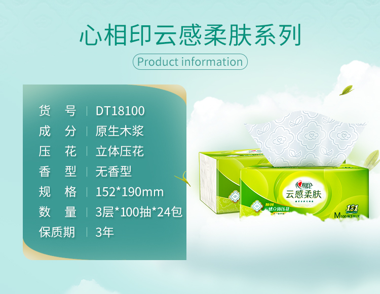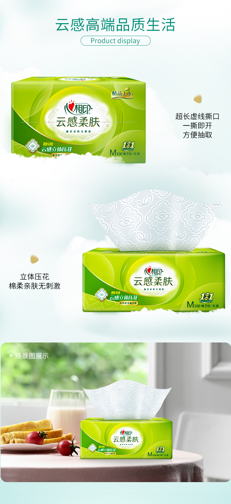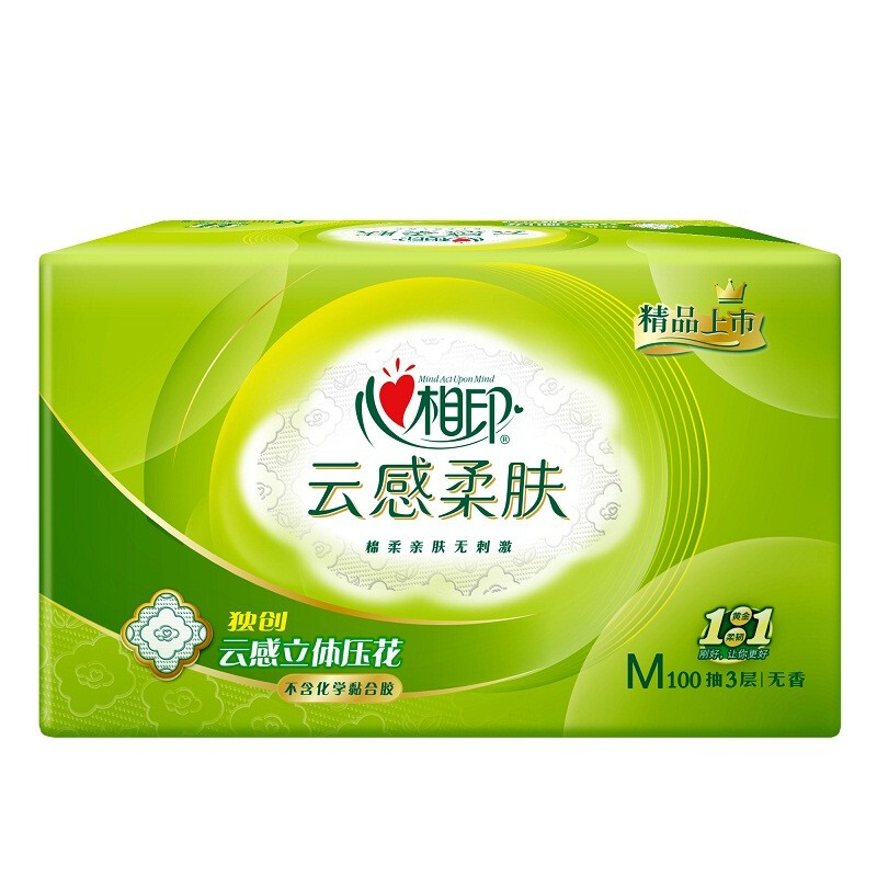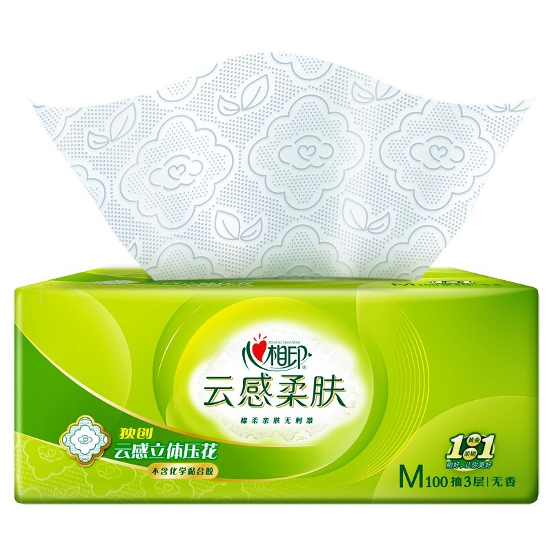 - 商品名称:心相印软抽纸面巾 云感柔肤系列 M码三层100抽24包 (立体压花 整箱售卖)