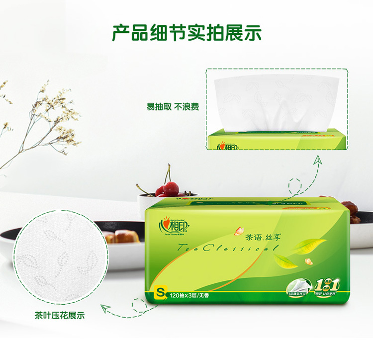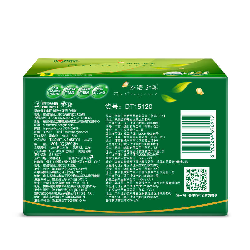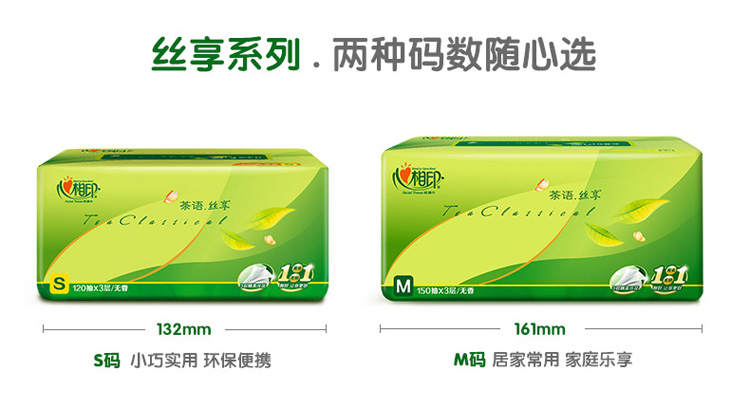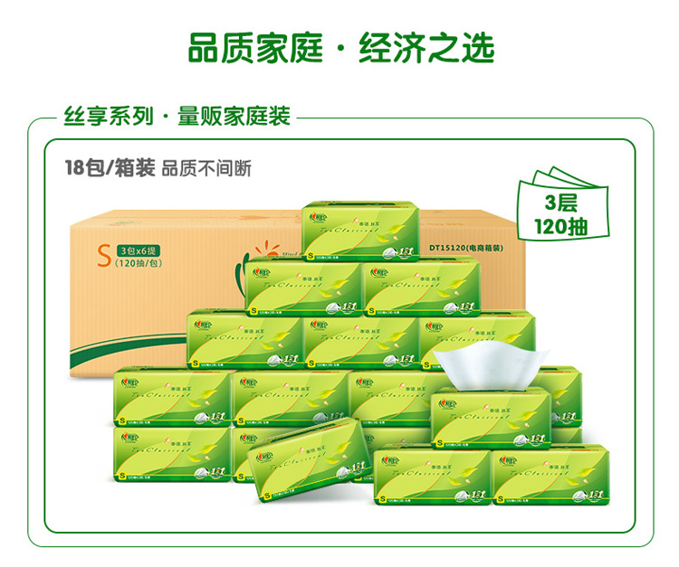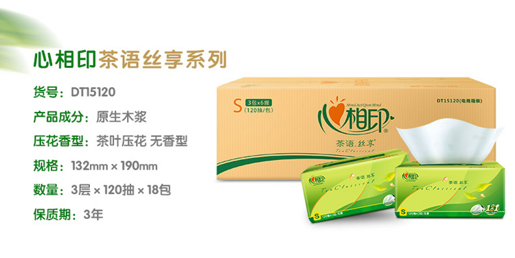 - 商品名称:心相印抽纸 茶语丝享系列3层120抽面巾纸*18包纸巾(S plus码 母婴可用 整箱销售)