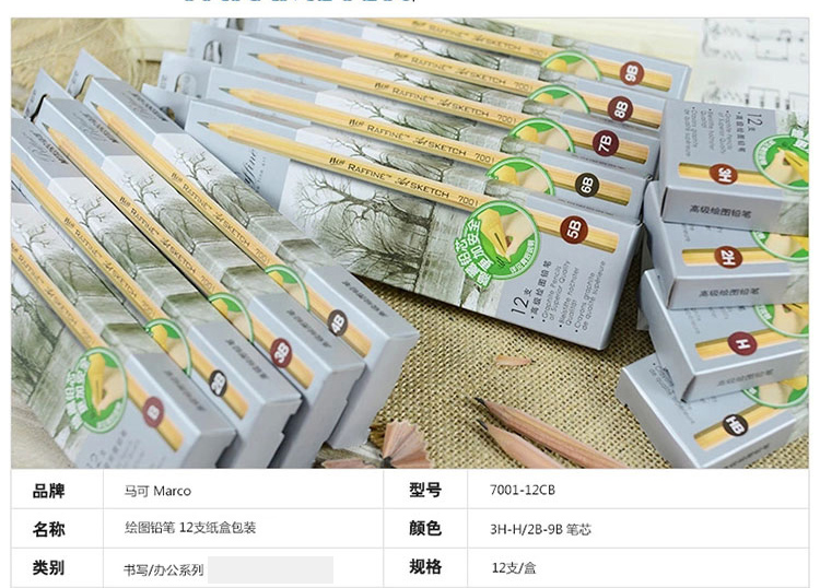- 商品名称:马可铅笔 7001 原木杆环保铅笔 专业绘图 绘画美术写生素描铅笔 2B 1支