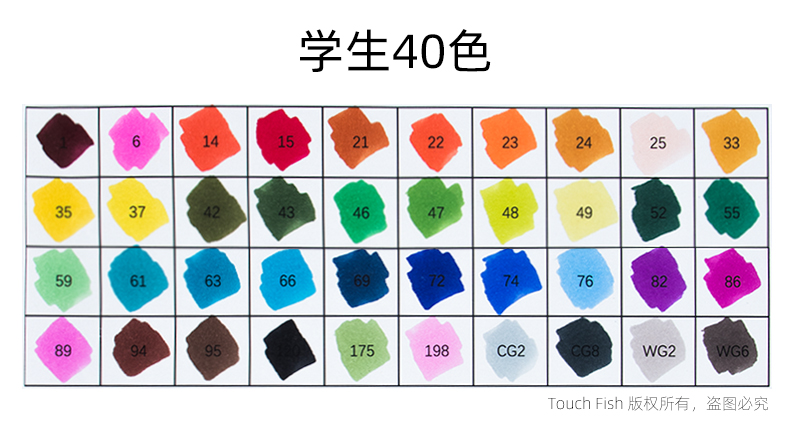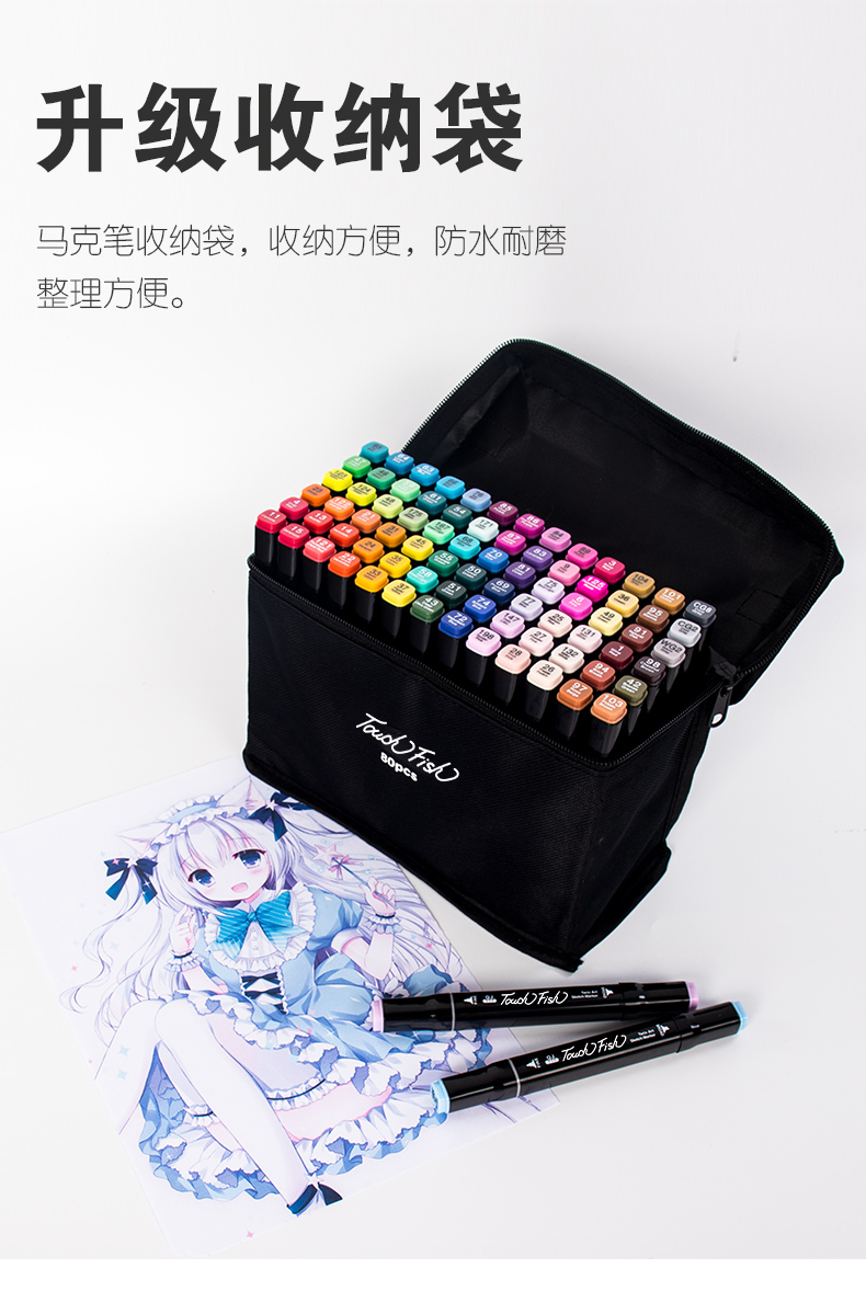 商品名称:Touch马克笔套装学生水彩笔40色双头儿童绘画画笔套装生日礼物黑袋黑杆马克笔 动漫40色