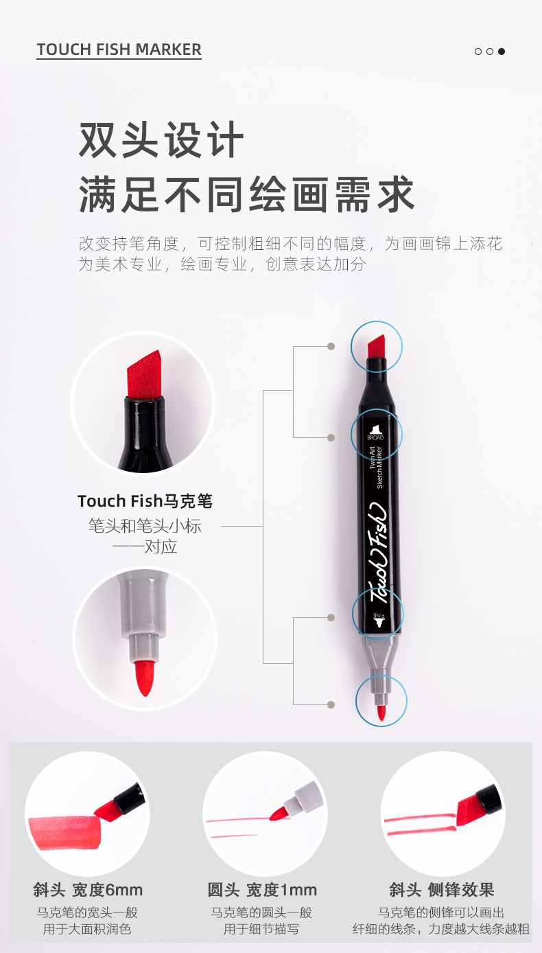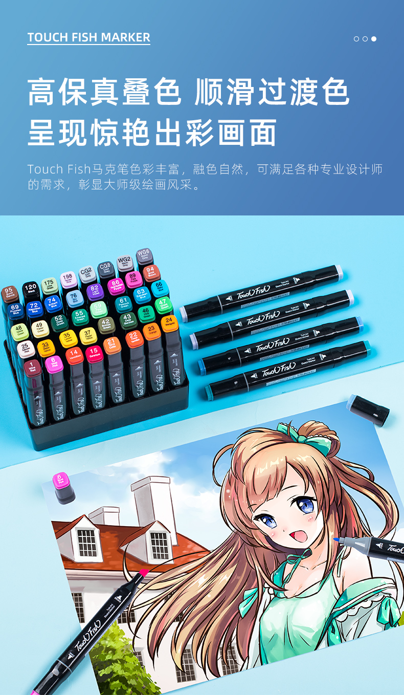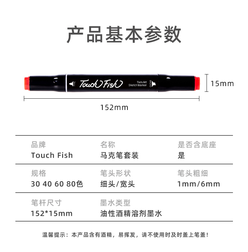 商品名称:Touch Fish马克笔套装30色 双头儿童水彩笔小学生绘画画笔 学生30色(带底座)