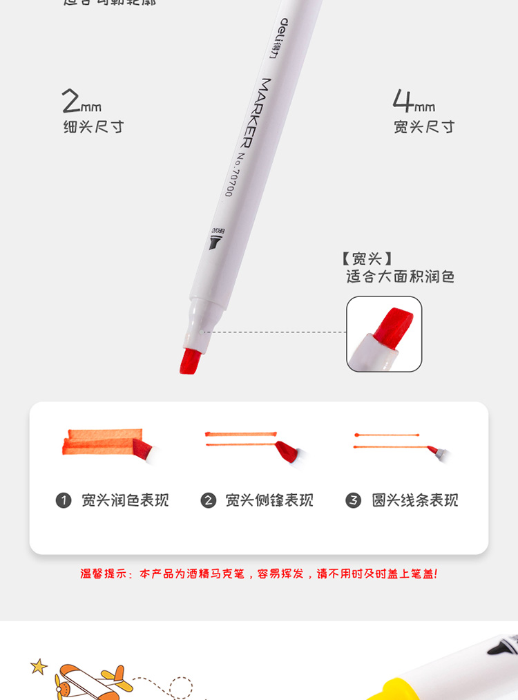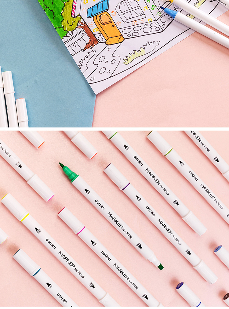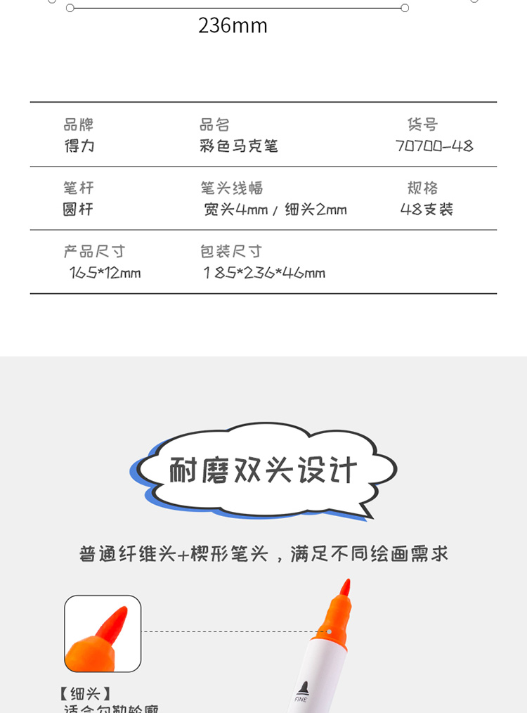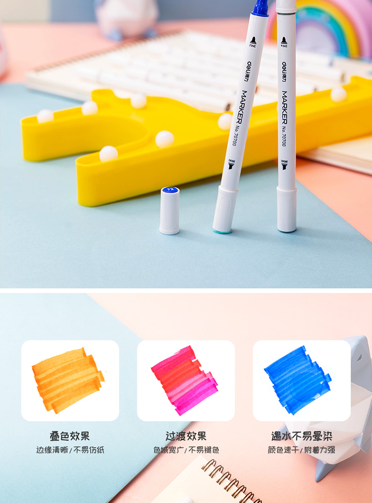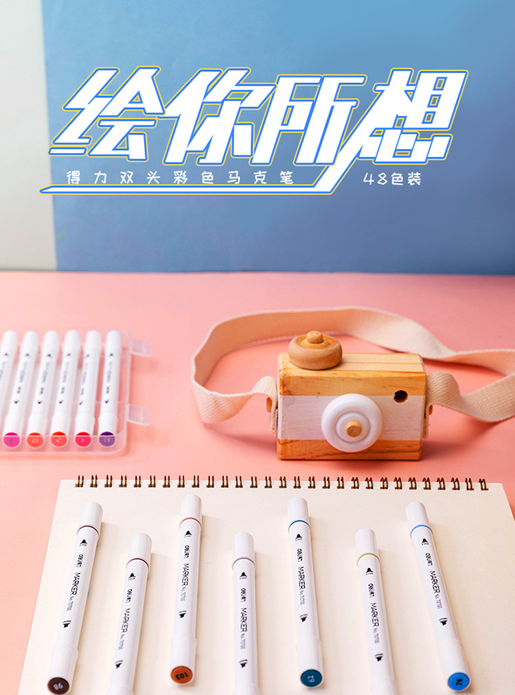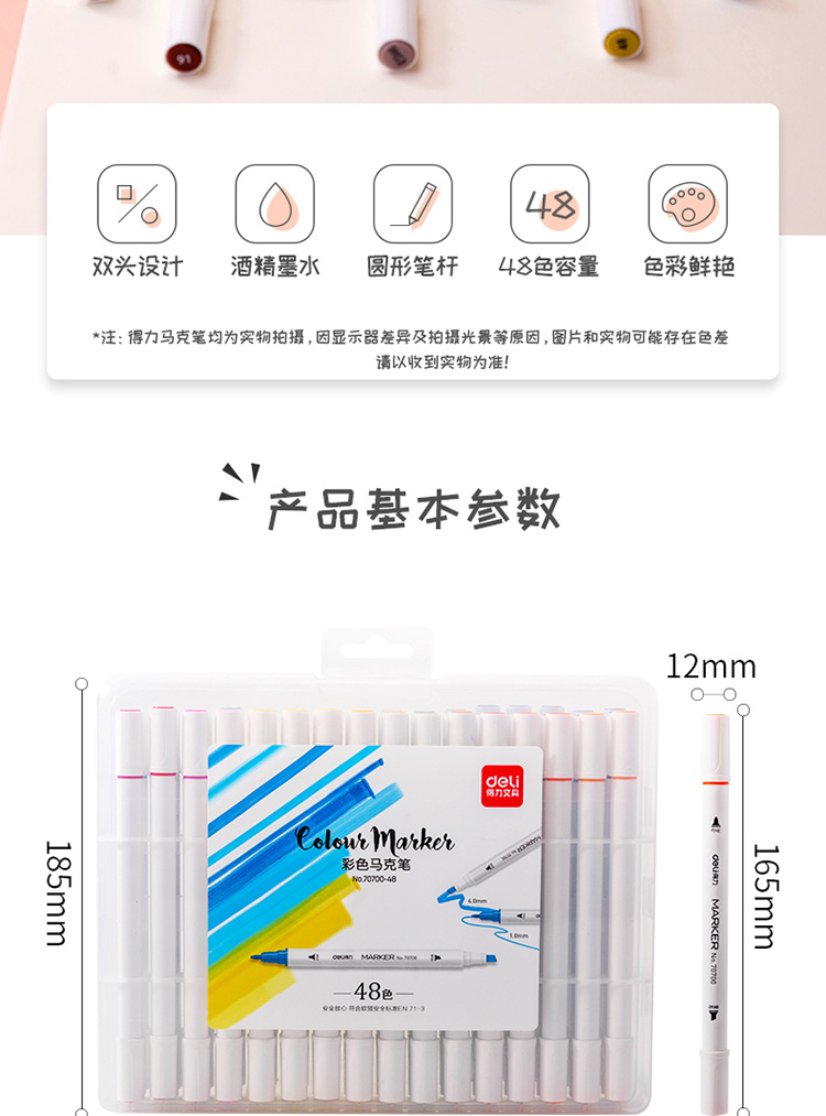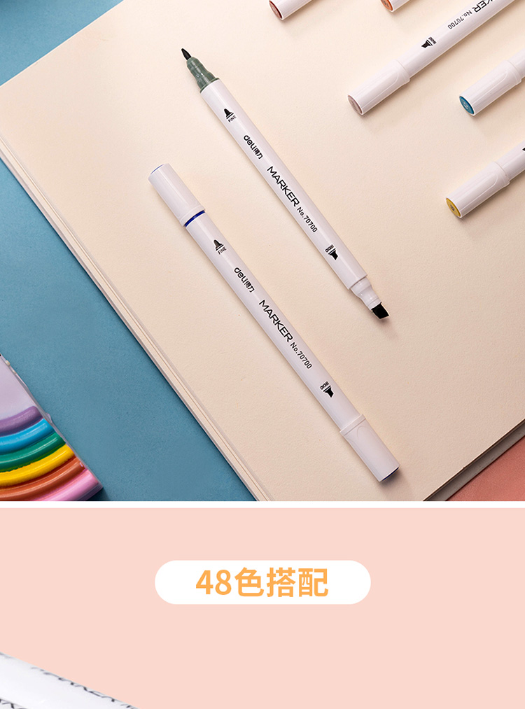 - 商品名称:得力(deli)48色双头细杆马克笔套装 学生水彩笔双头绘画彩笔手绘漫画笔设计绘画记号笔 70700-48