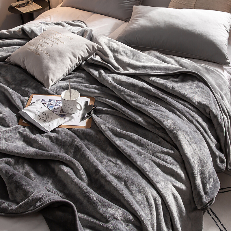 - 商品名称:九洲鹿 毛毯加厚法兰绒毯子 珊瑚绒午睡空调毯毛巾被盖毯 灰色 150*200cm
