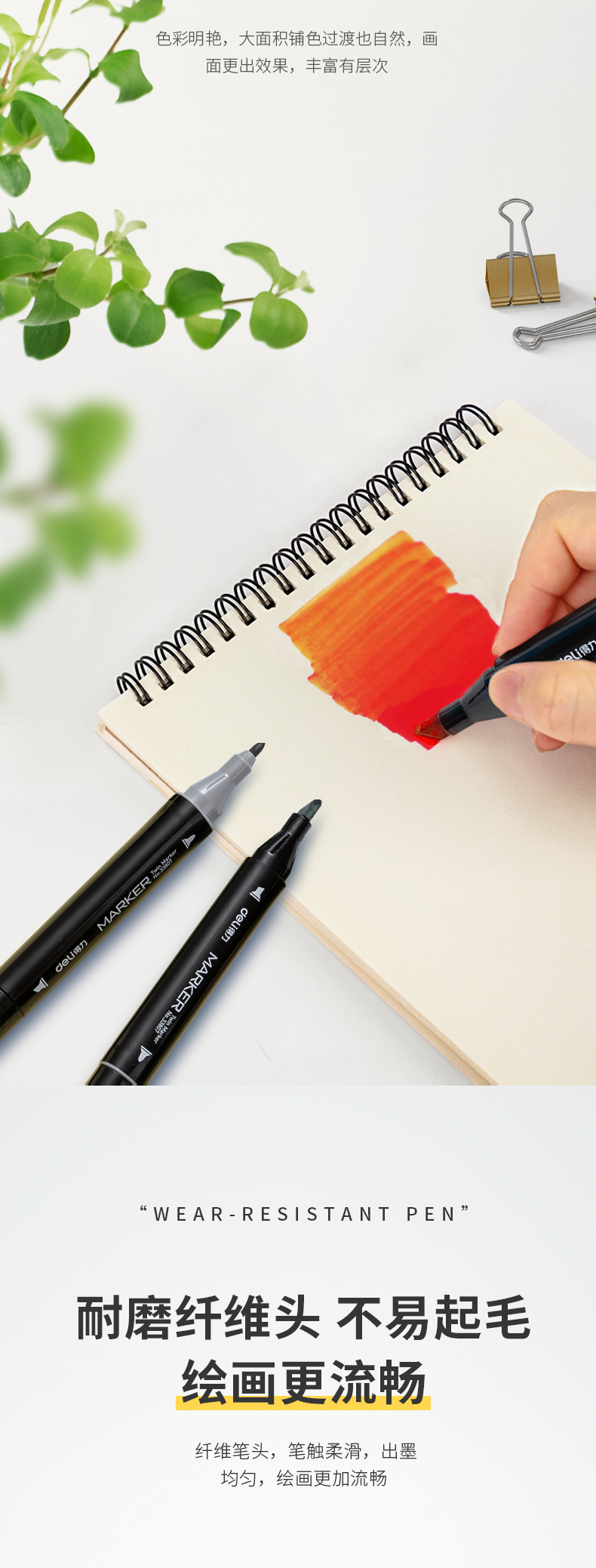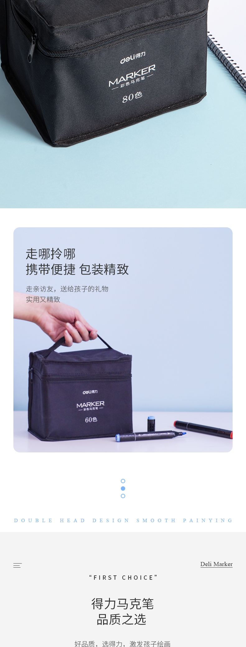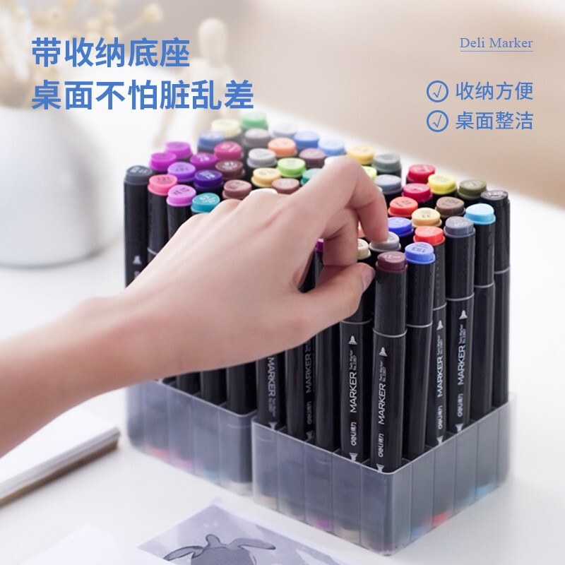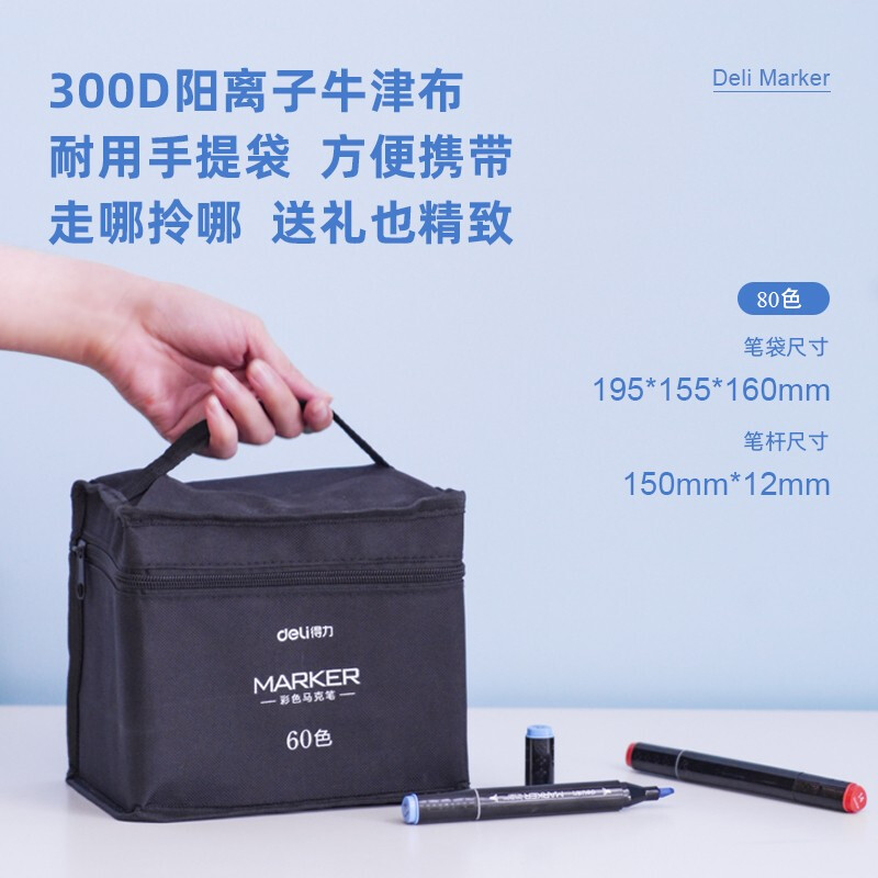 - 商品名称:得力(deli)学生马克笔套装 双头速干 儿童水彩笔绘画漫画笔美术生专用 便携黑袋带底座 钢琴黑杆80色33807-80
