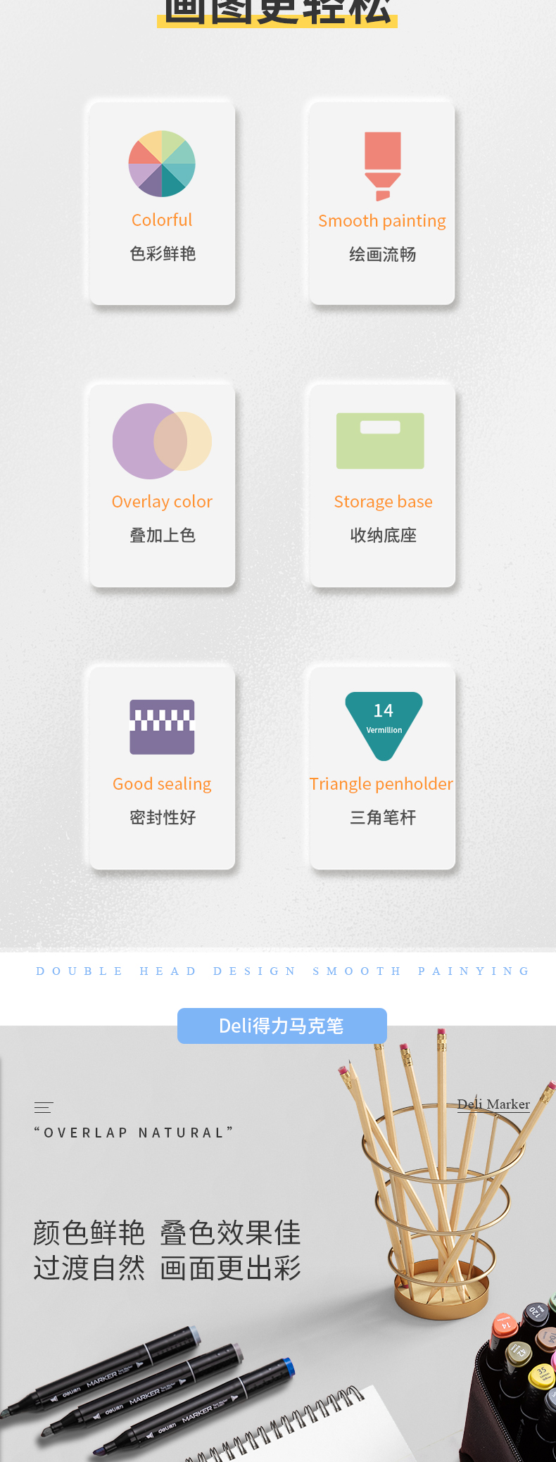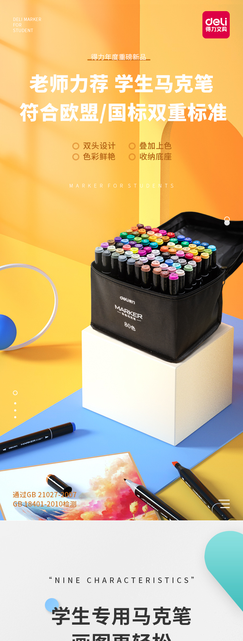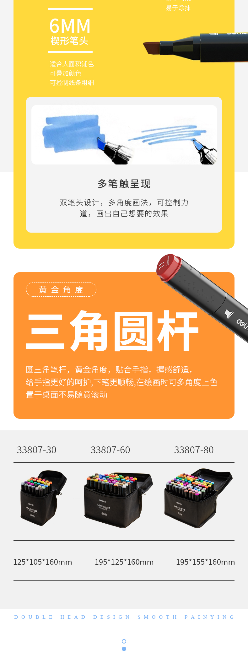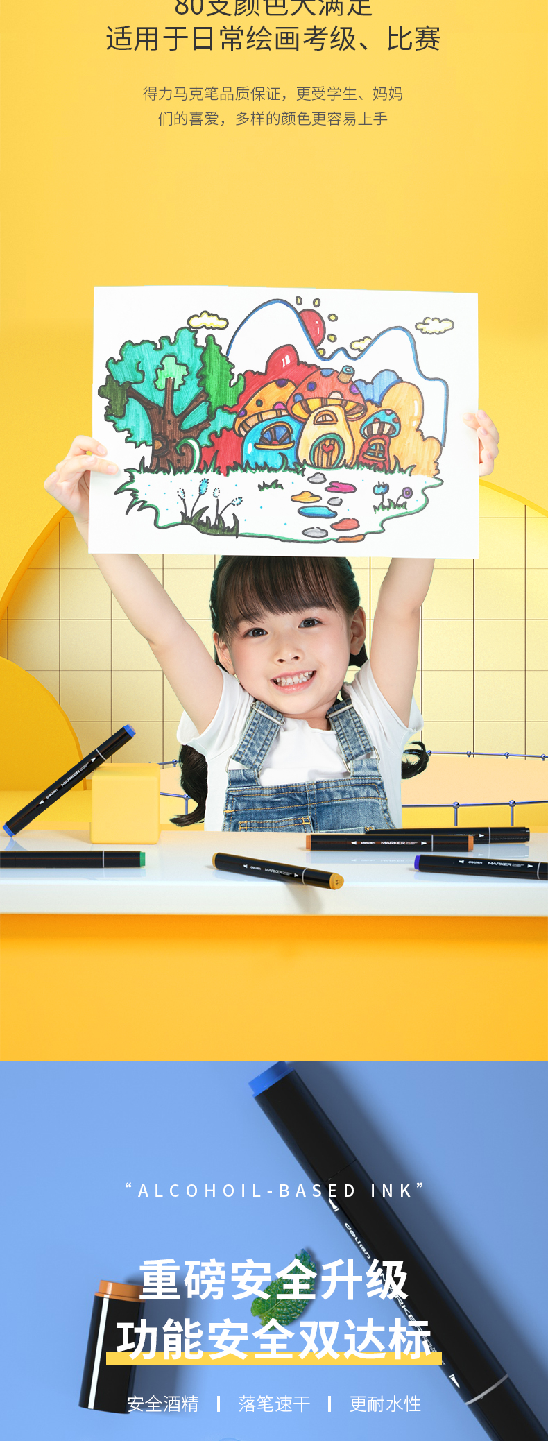 - 商品名称:得力(deli)学生马克笔套装 双头速干 儿童水彩笔绘画漫画笔美术生专用 便携黑袋带底座 钢琴黑杆80色33807-80