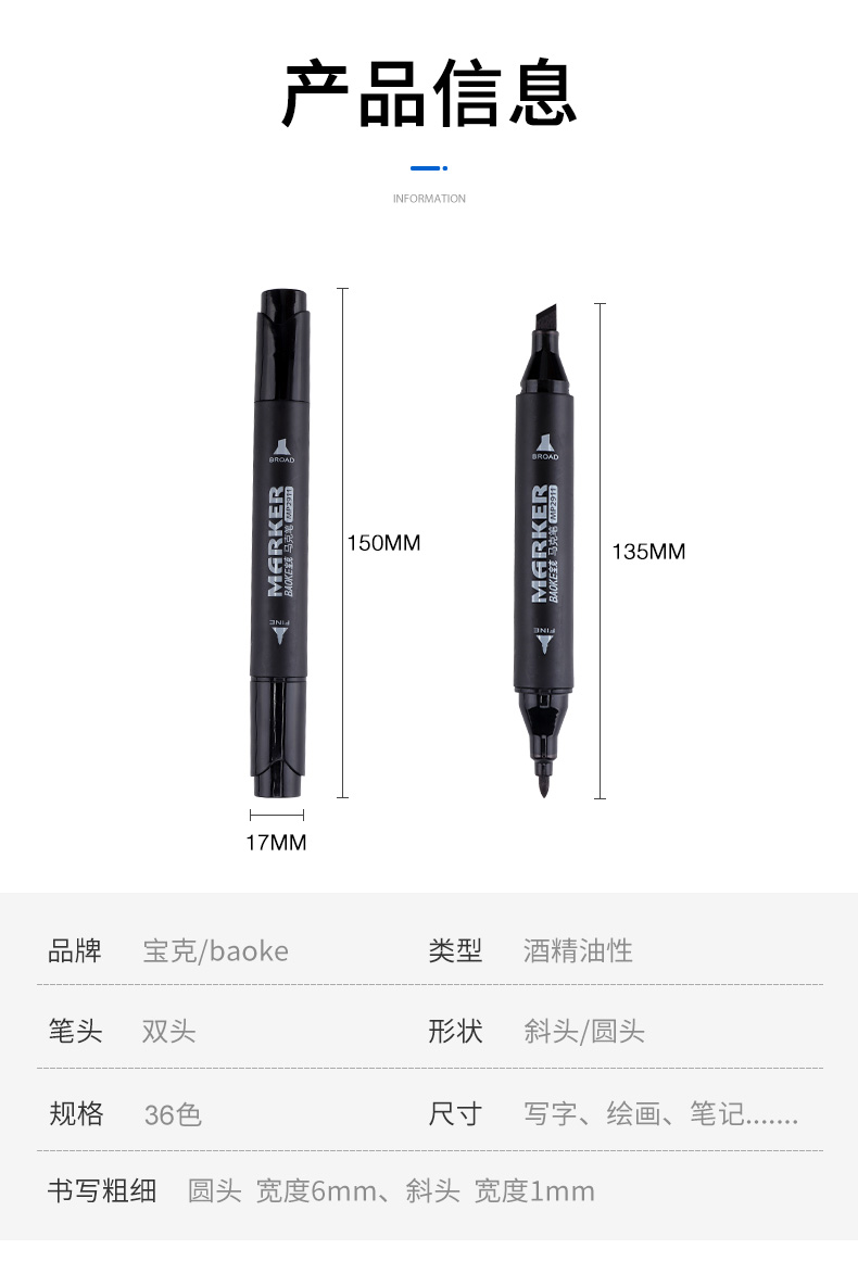 - 商品名称:宝克(BAOKE)MP2911-36 双头酒精油性马克笔套装 学生手绘漫画设计绘画彩笔画笔记号笔36色