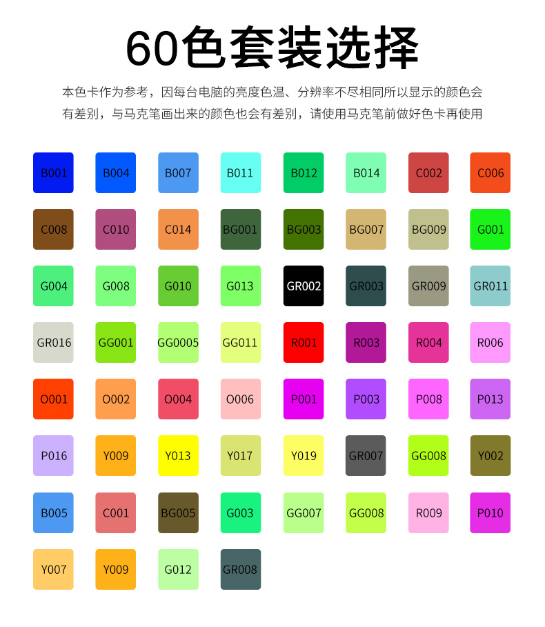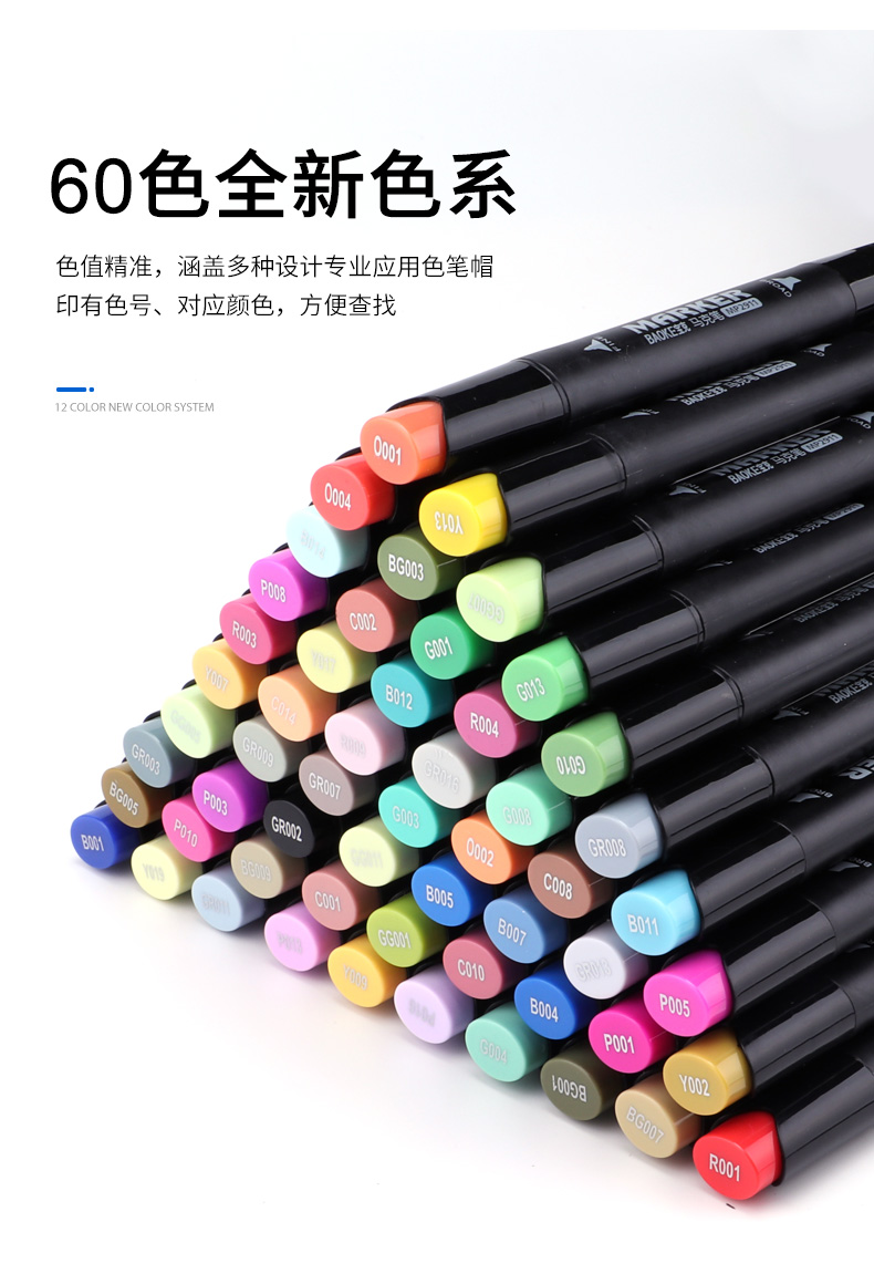 - 商品名称:宝克(BAOKE)MP2911-60 双头酒精油性马克笔套装 学生手绘漫画设计绘画彩笔画笔记号笔60色