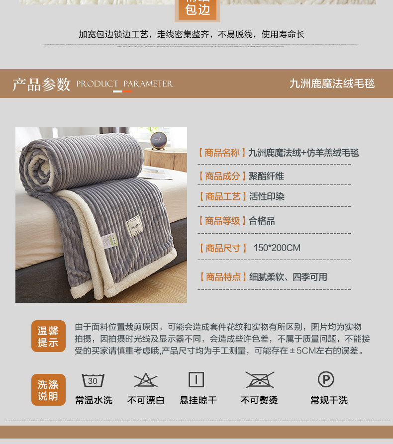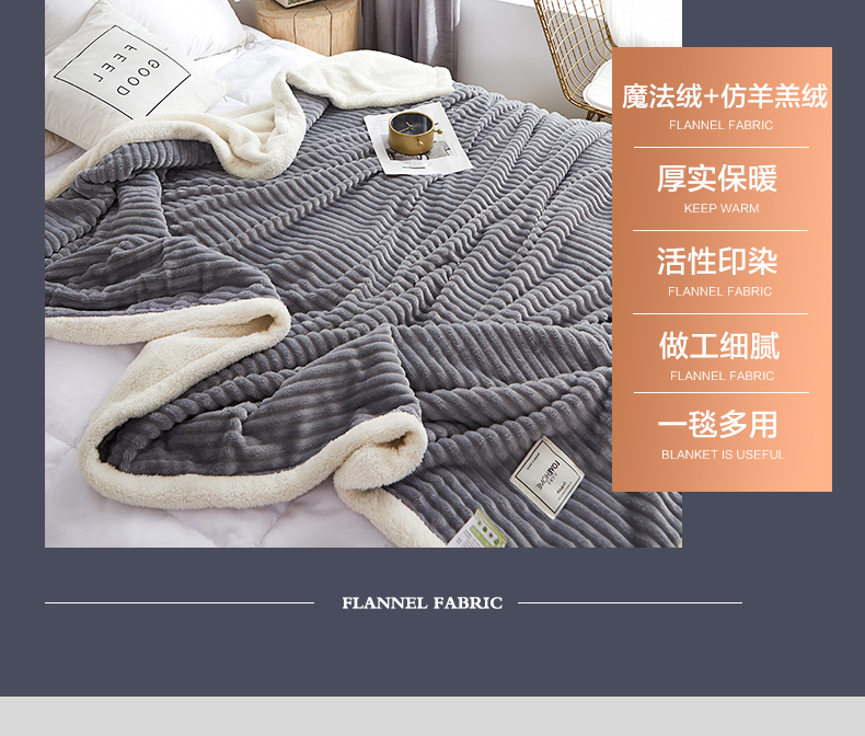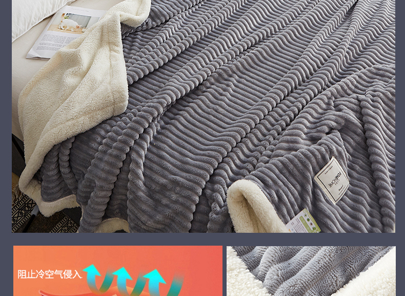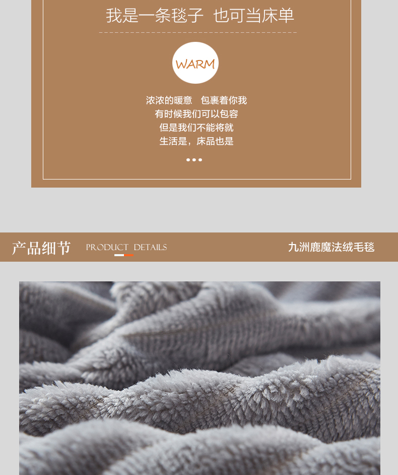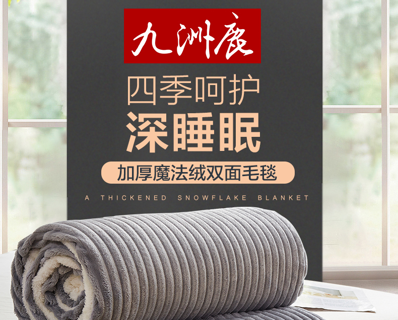 - 商品名称:九洲鹿 毛毯 牛奶绒双面毛毯珊瑚绒毯子 空调午睡毯盖毯小被子毛巾被床单 绅士灰 150*200cm