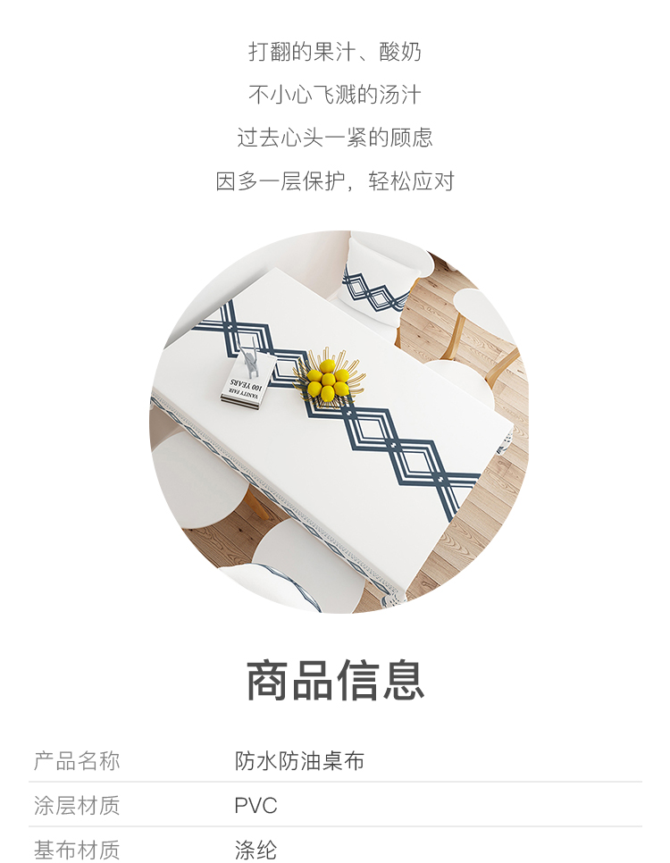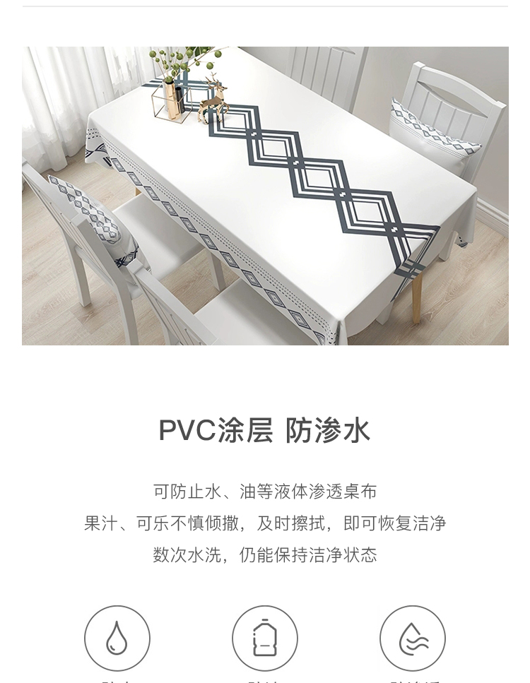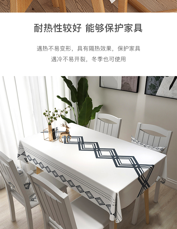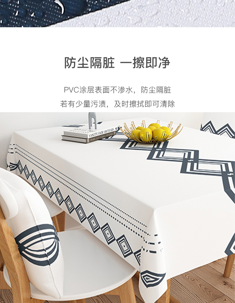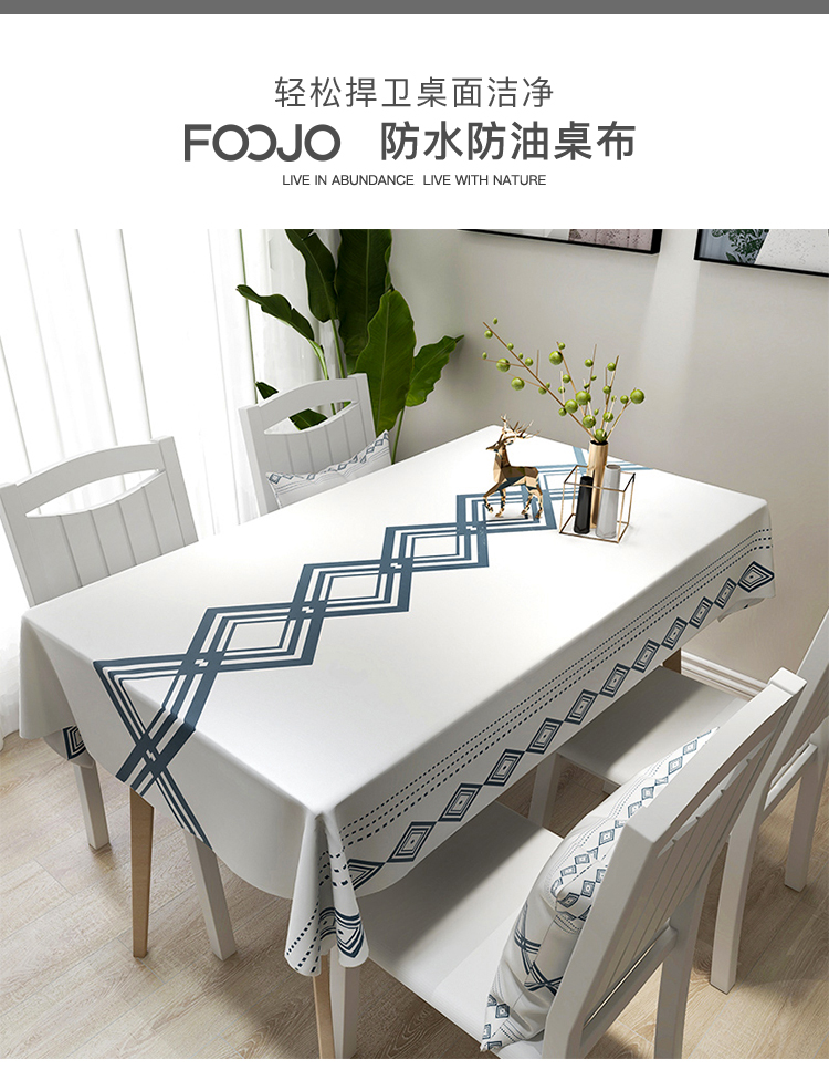 - 商品名称:FOOJO 桌布家居 耐高温防水防油PVC免洗台布餐桌布艺137*180cm 现代简约餐桌台布 几何桌旗