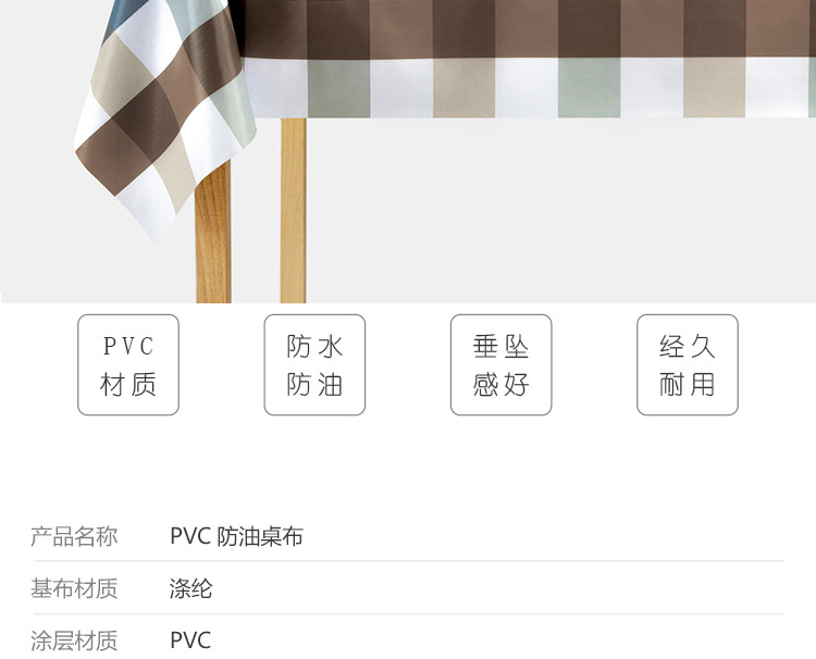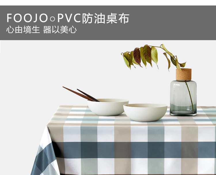 商品名称:FOOJO防水防油格纹桌布 茶几餐桌垫防烫免洗PVC布艺桌布垫台布90*140cm雅蓝