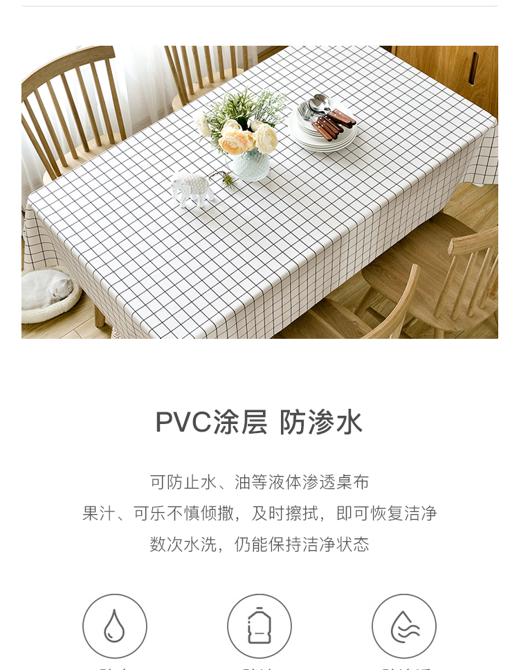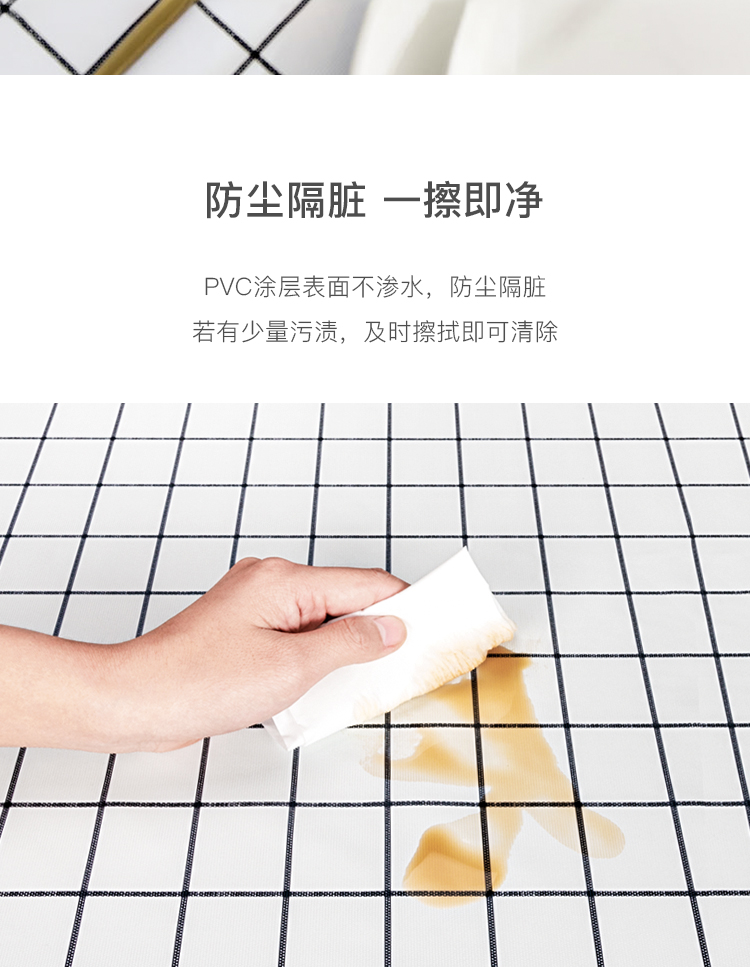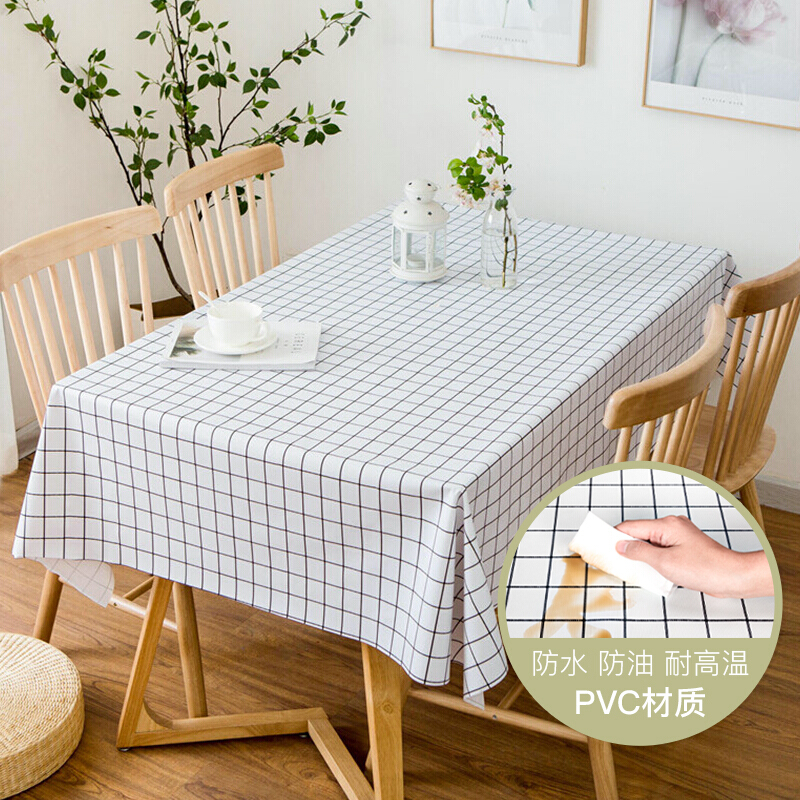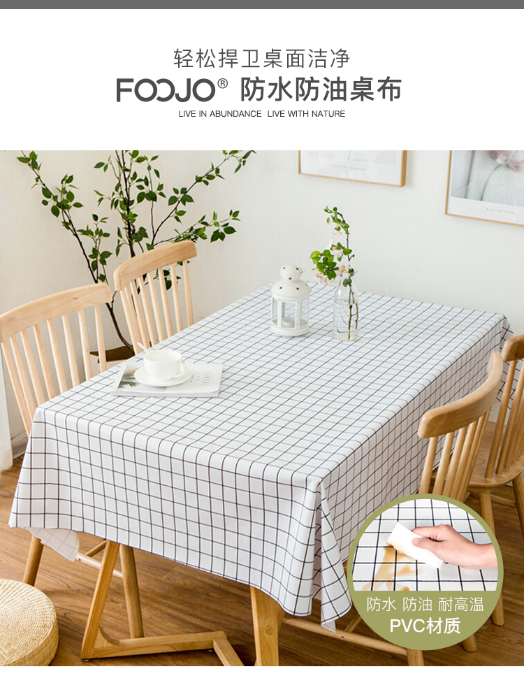 FOOJO桌布防水防油桌垫 北欧风格纹餐桌布茶几垫135*180cm清新白格