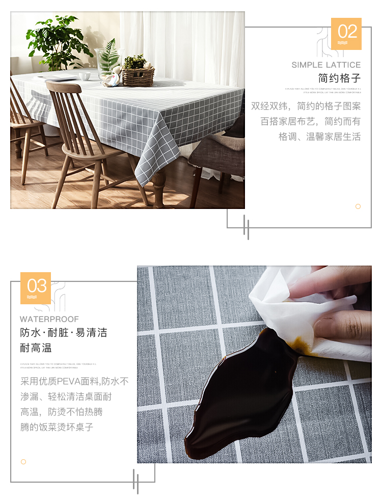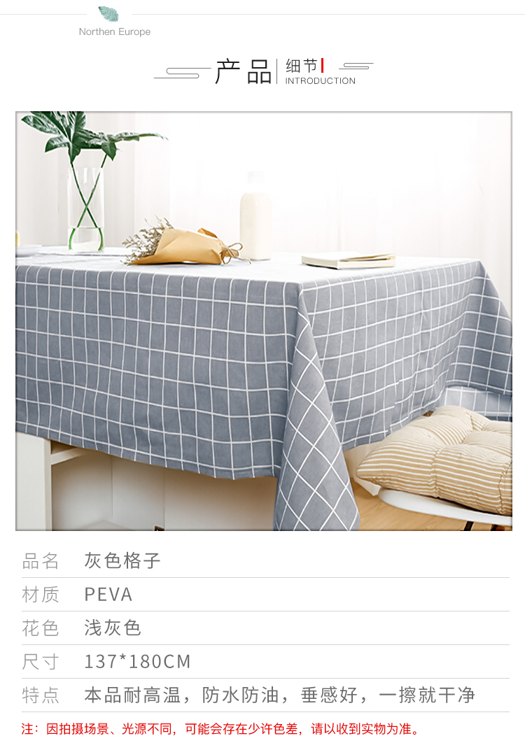 - 商品名称:意尔嫚 桌布防水 防油桌垫 免洗餐桌布茶几垫台布 北欧风格子 137*180cm 灰色