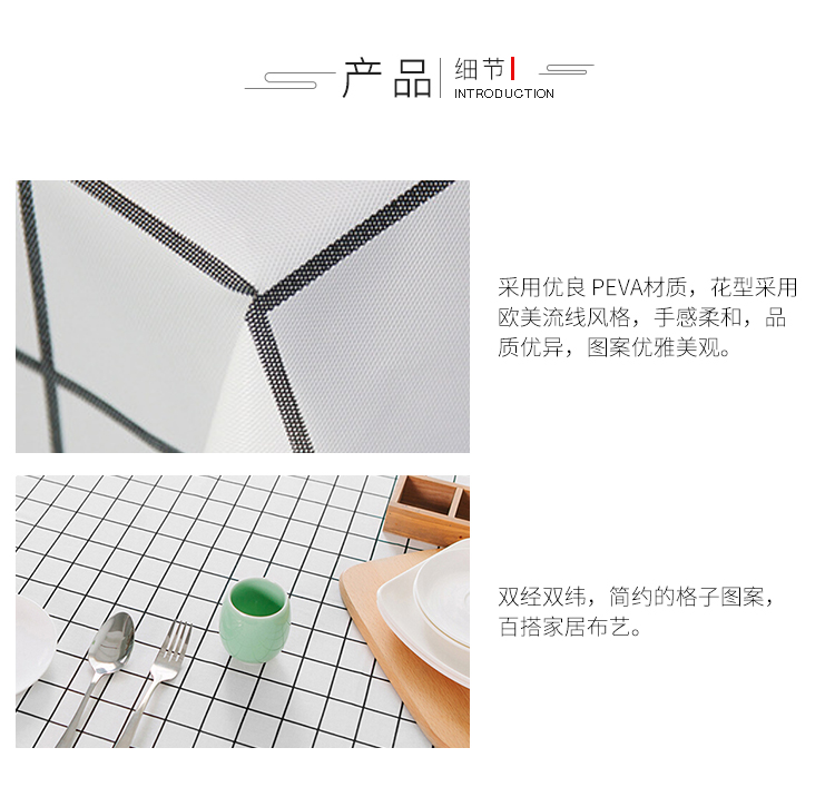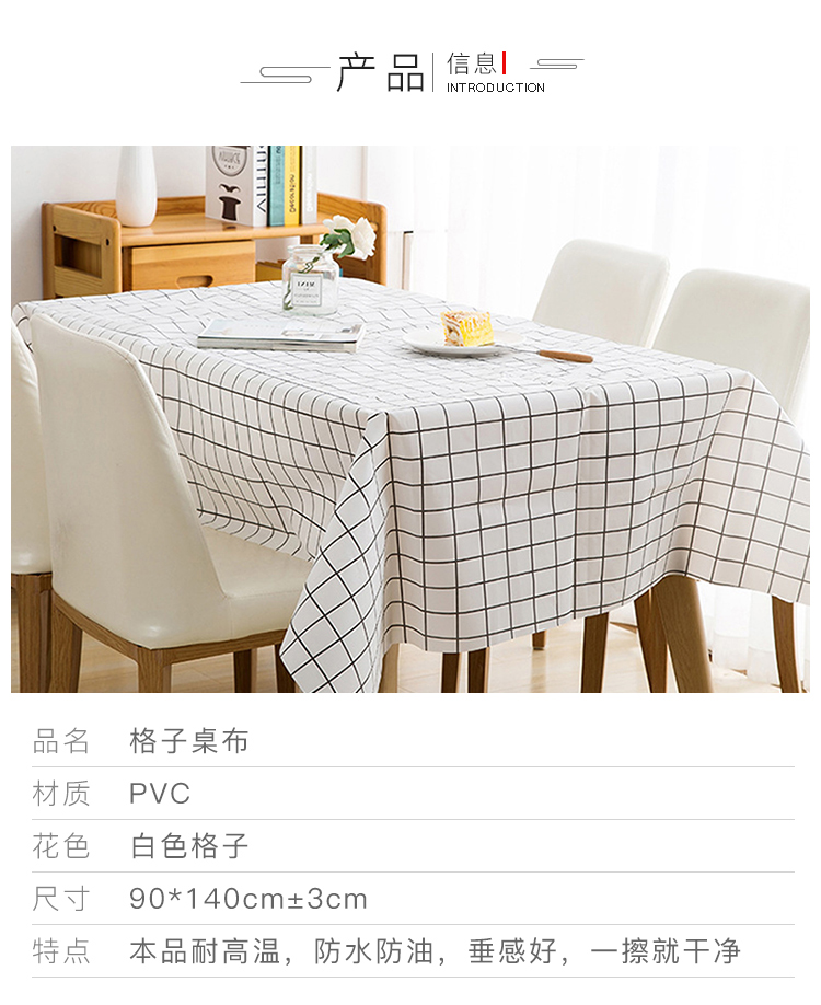 - 商品名称:意尔嫚 桌布防水 防油桌垫 免洗餐桌布茶几垫台布 北欧风格子 137*180cm 白色