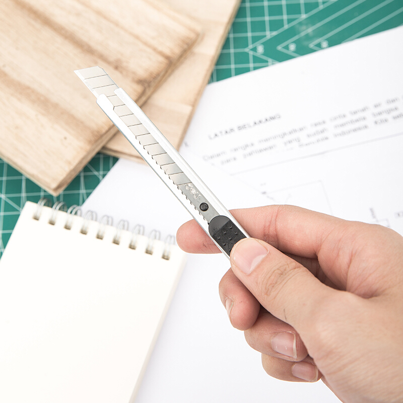 得力(deli)小号金属外壳办公家用美工刀/裁纸刀 办公用品 2053