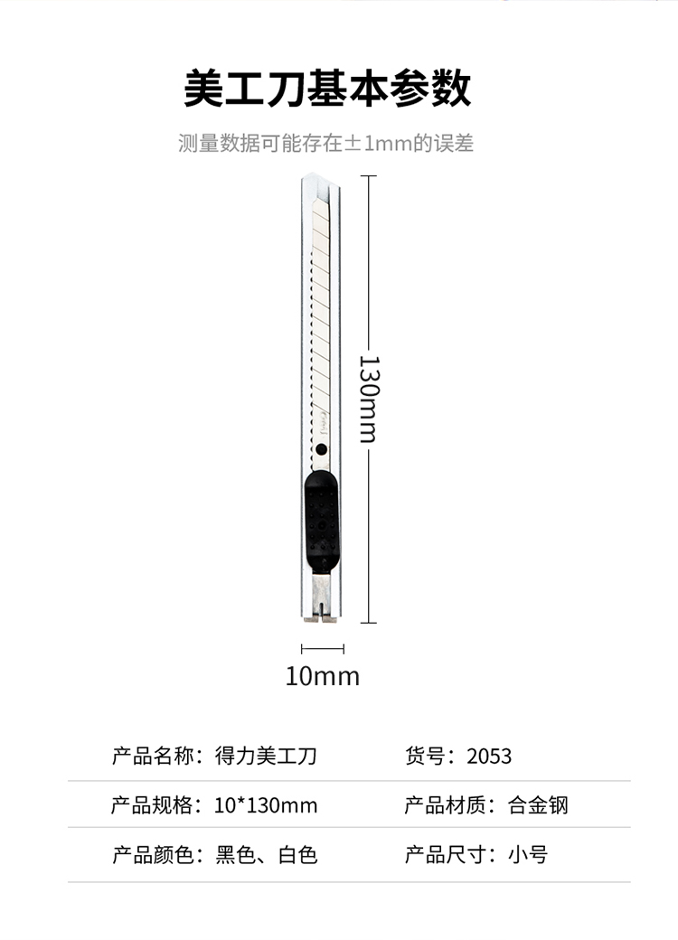 商品名称:得力(deli)小号金属外壳办公家用美工刀/裁纸刀 办公用品 2053