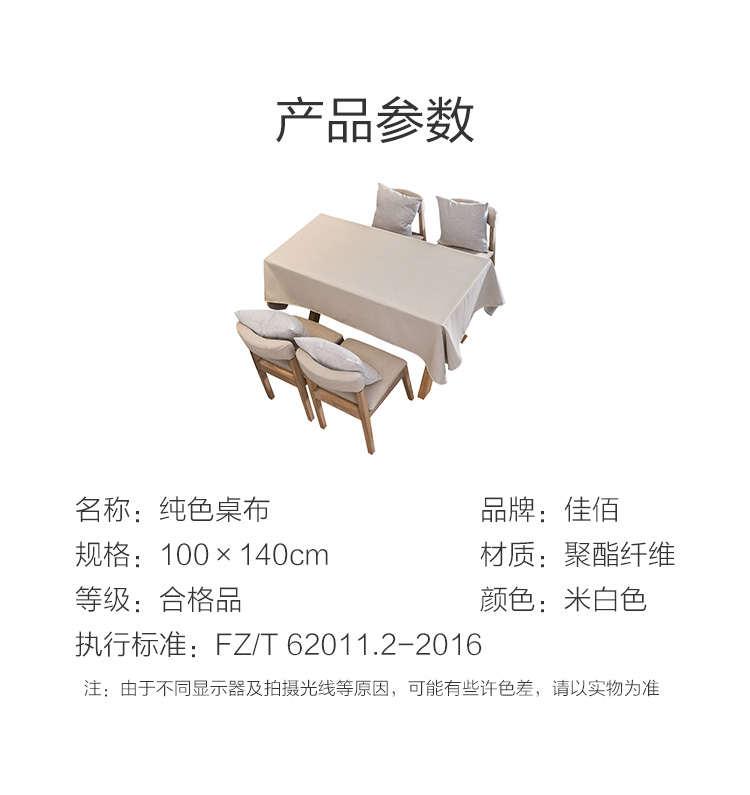 - 商品名称:佳佰 布艺桌布纯色桌垫北欧简约台布茶几布餐桌布 长方形餐桌垫 米白色100cm*140cm