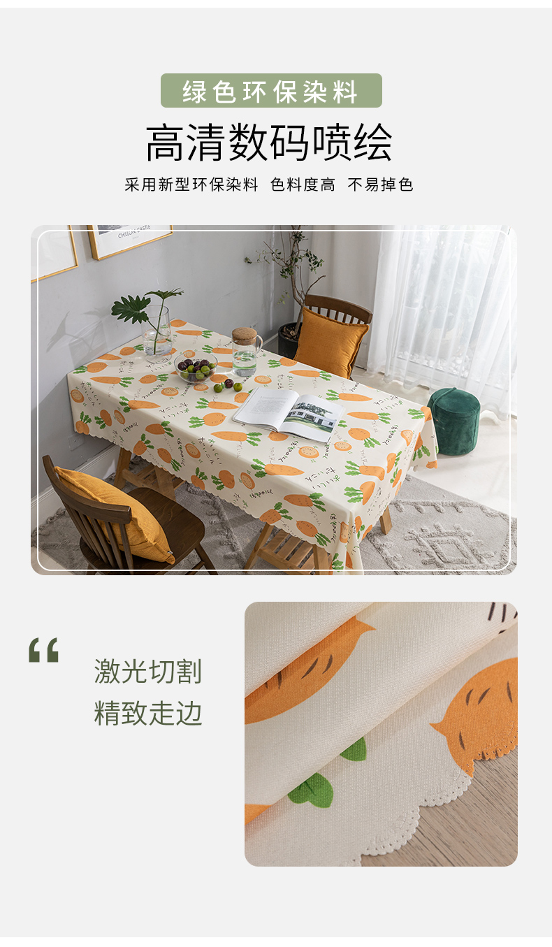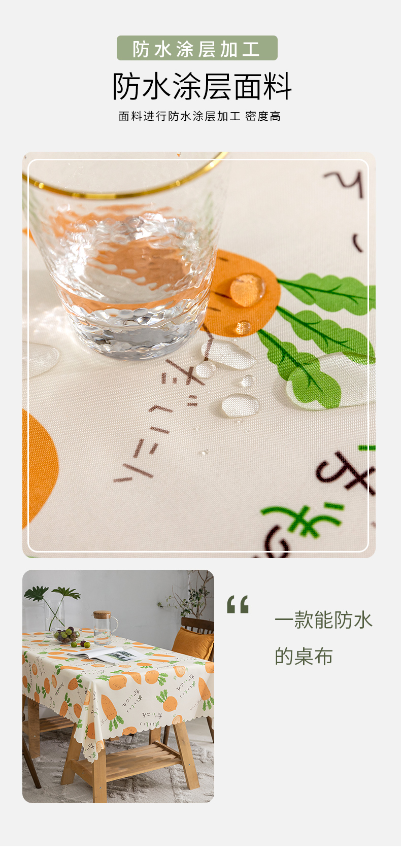商品名称:诺罗 桌布防水防油免洗餐桌布书桌ins学生北欧长方形家用茶几垫布艺 橘色胡萝卜 桌布130cm*180cm/1片