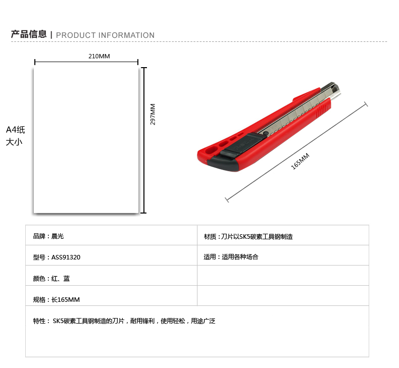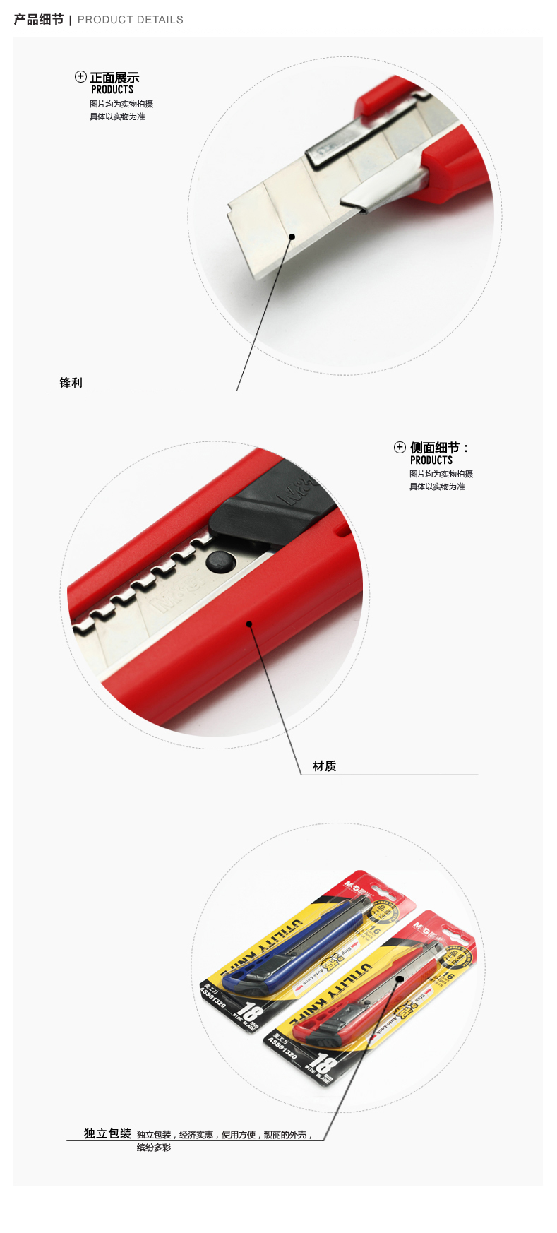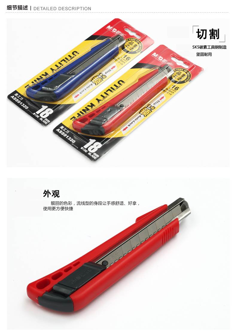 - 商品名称:晨光(M&G)ASS91320 大号通用办公美工刀/裁纸刀 颜色随机 18mm 3把装