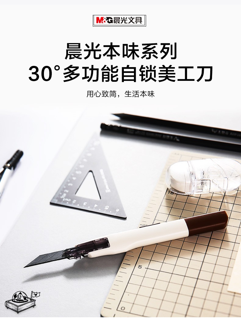 - 商品名称:晨光文具本味30°多功能自锁美工刀美术生模型爱好者手工刀合金钢做手工做工艺 多功能自锁小刀可伸缩 单把ASSN2218