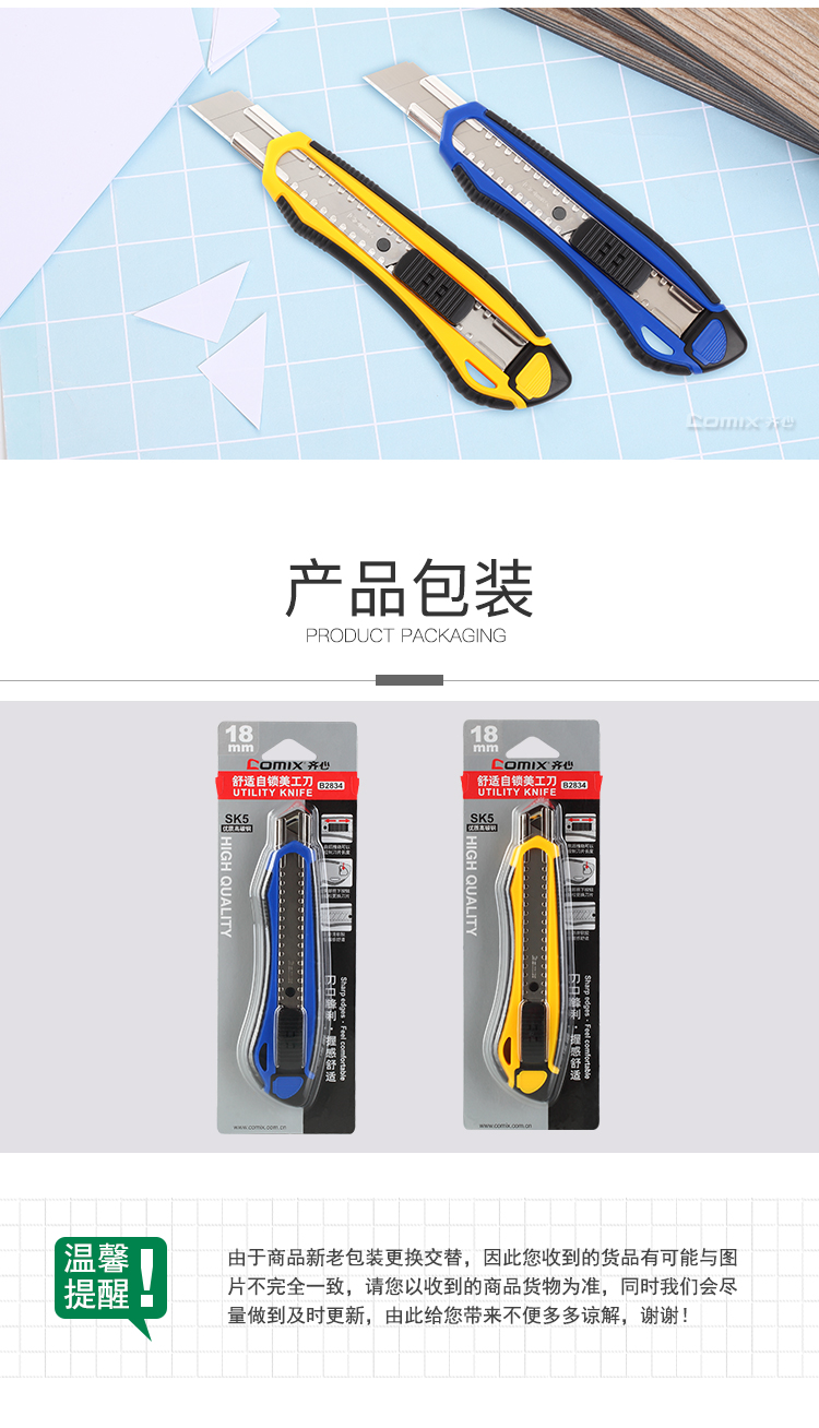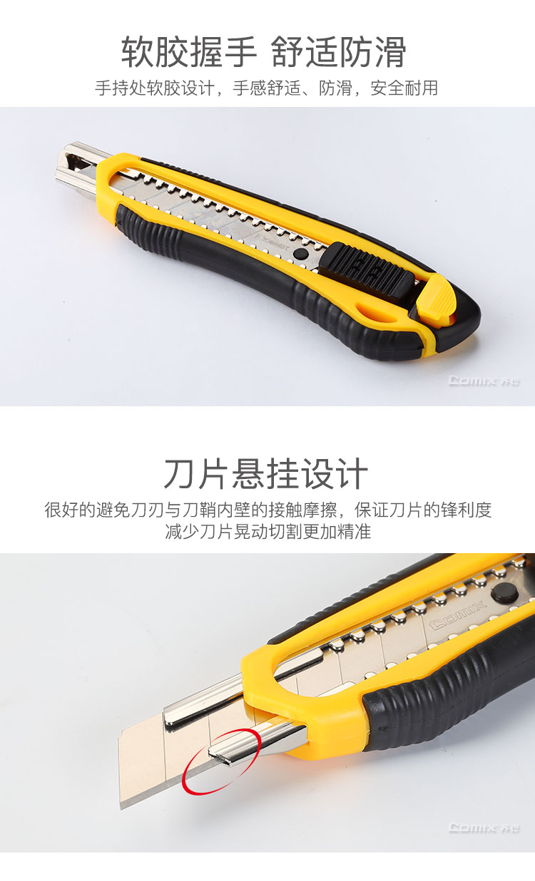 齐心(COMIX)舒适自锁美工刀 18mm大号壁纸刀 颜色随机 办公文具B2834