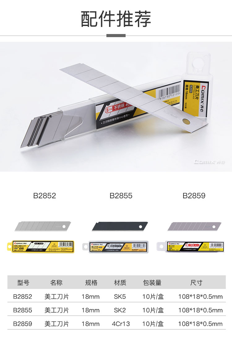 商品名称:齐心(Comix) 带金属保护套18mm美工刀 大号壁纸刀 黄 B2802