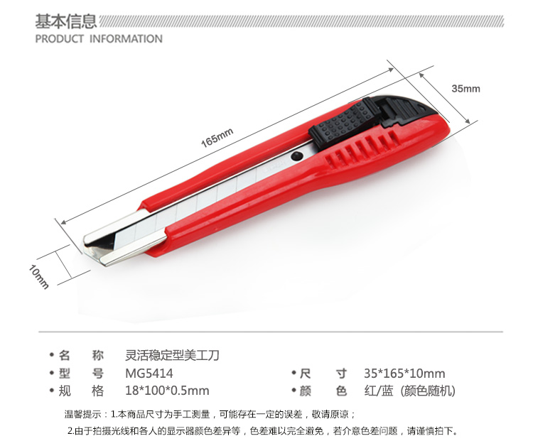 - 商品名称:广博(GuangBo) 美工刀 MG5414 灵活稳定型美工刀 颜色随机 美工刀