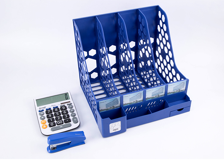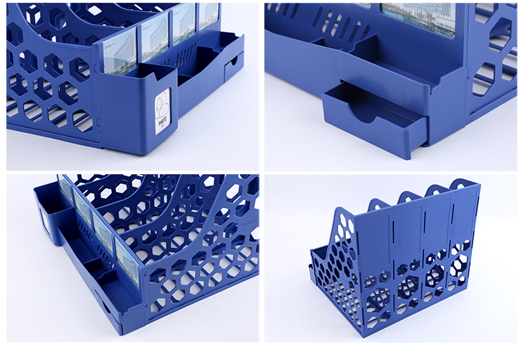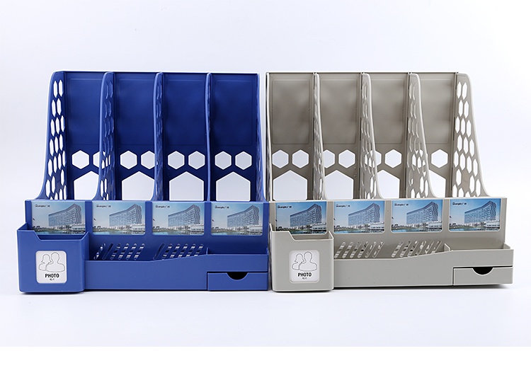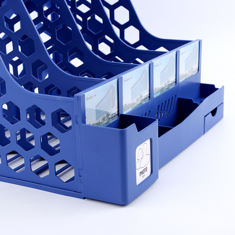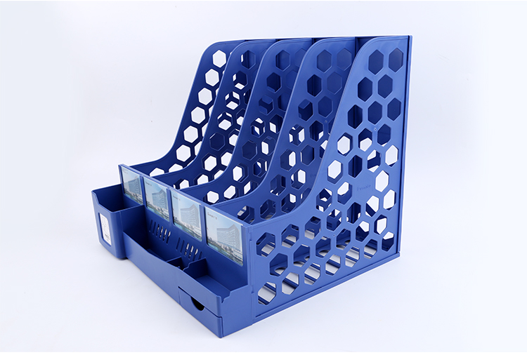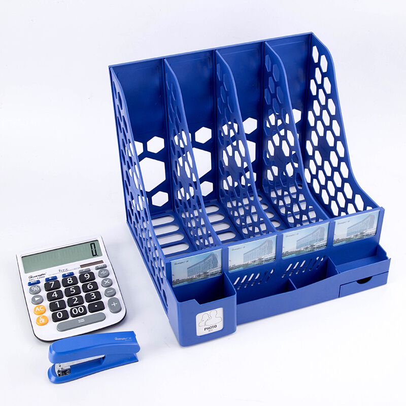 - 商品名称:广博(GuangBo)带多功能笔筒四联资料架/文件框/文件筐/ 蓝WJK9269