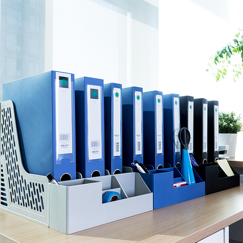 - 商品名称:得力(deli)三联带笔筒收纳桌面文件框 多功能镂空文件栏/文件框/资料筐 蓝色78980
