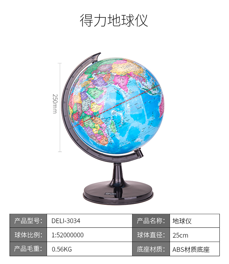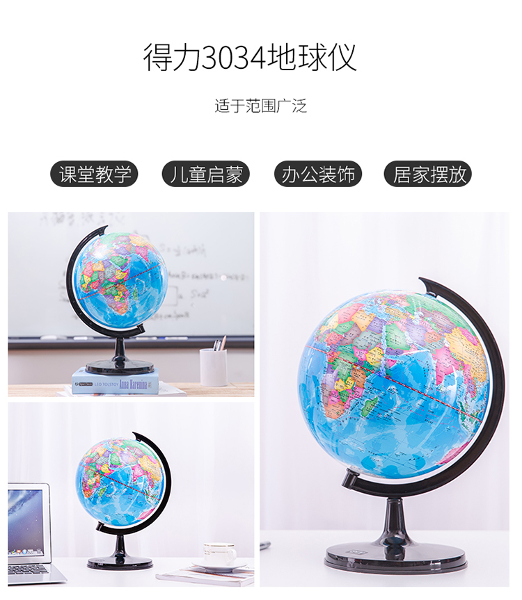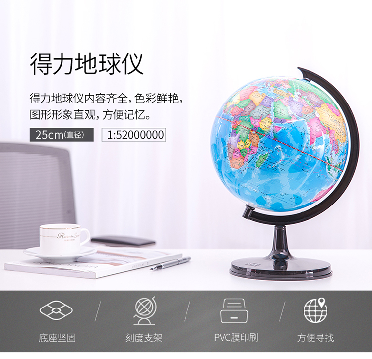 得力(deli)Ф25cm学生办公地球仪 教学研究用品/儿童启蒙摆件