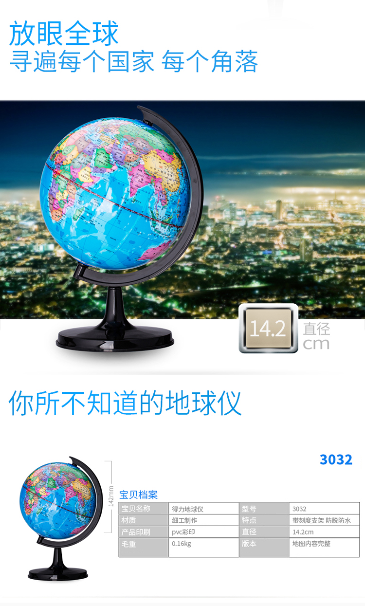 商品名称:得力(deli)Ф14.2cm学生办公地球仪 教学研究摆件
