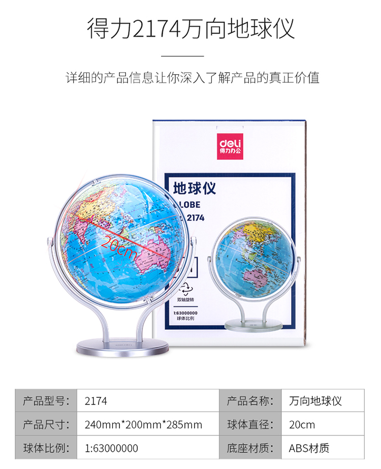 - 商品名称:得力(deli)Ф20cm商务万向地球仪摆 商务礼品居家摆设 办公用品 2174