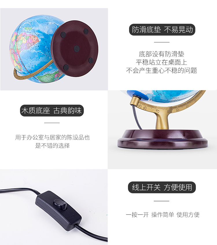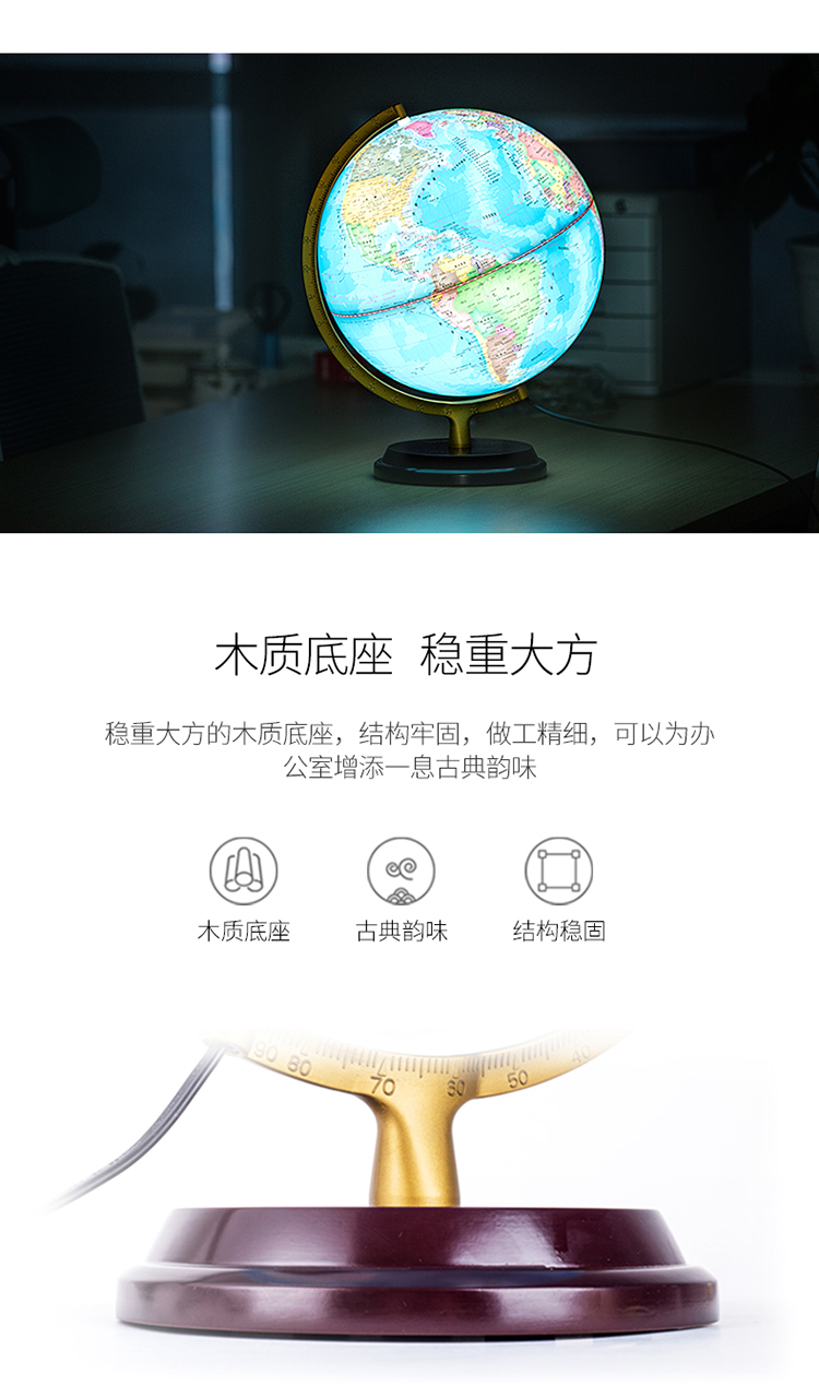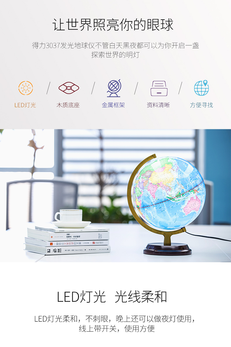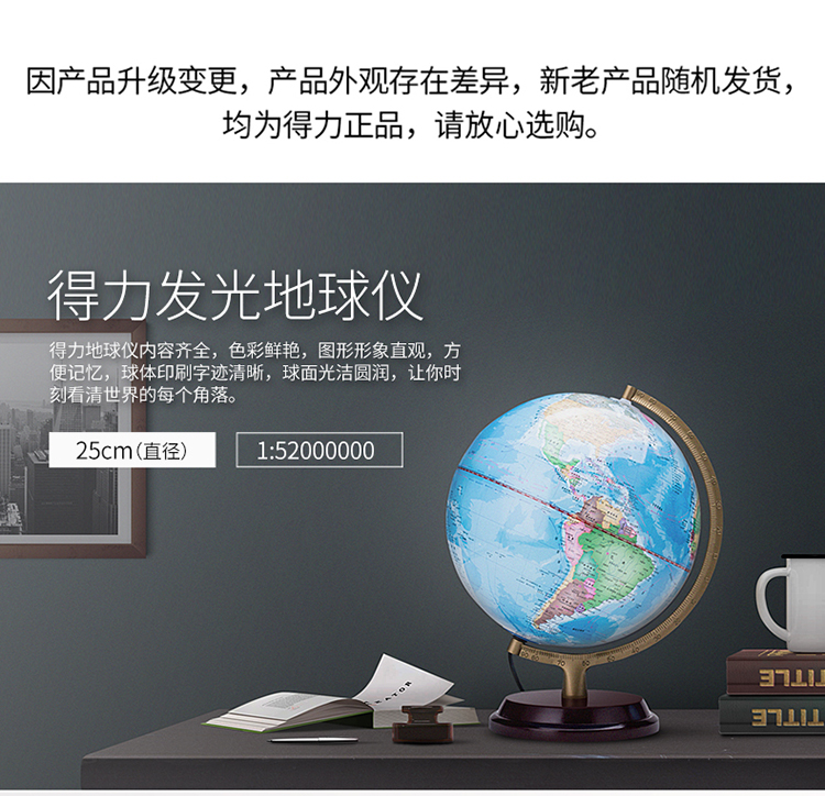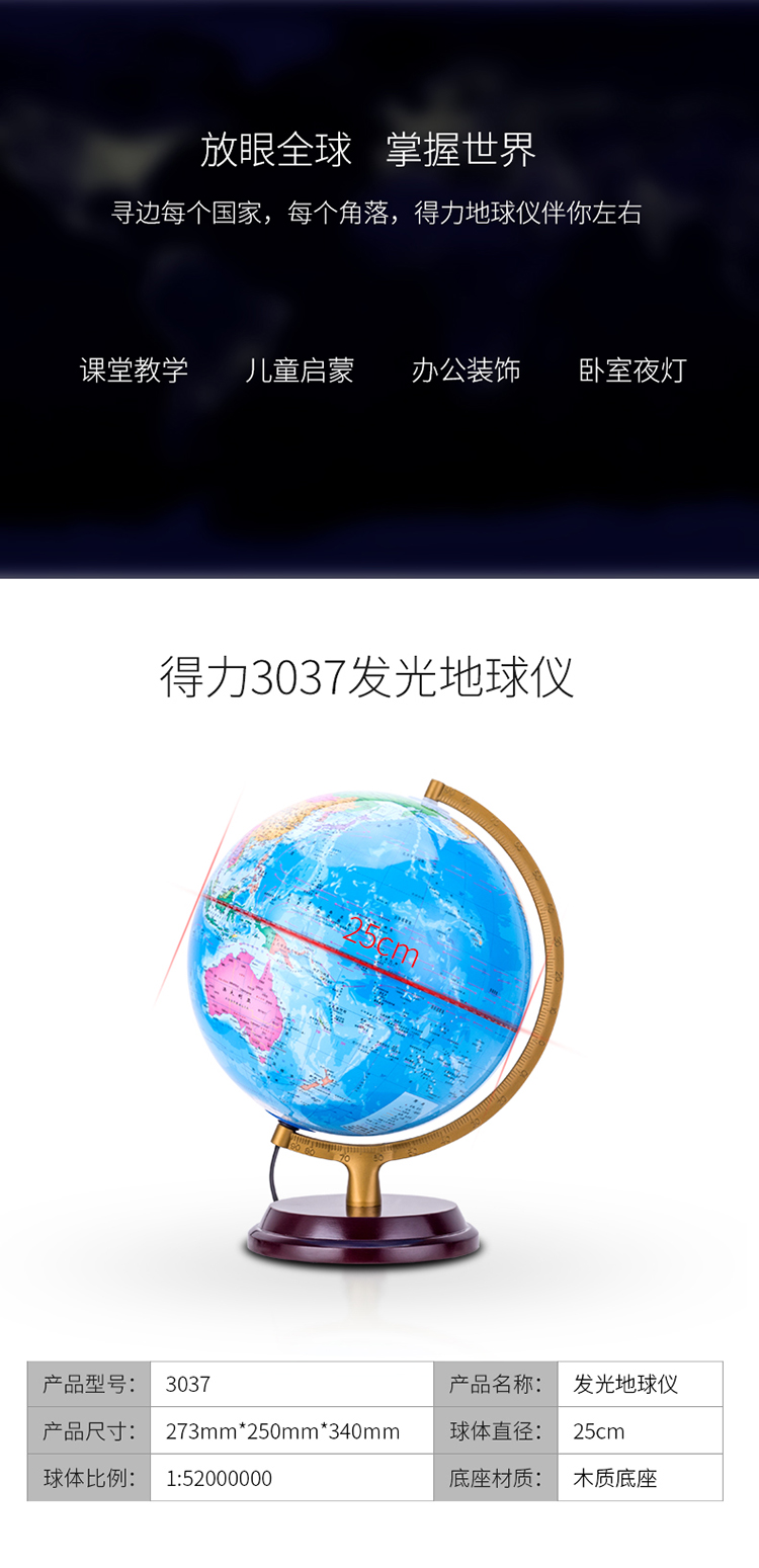 - 商品名称:得力(deli)Φ25cm木座金属架发光地球仪 商务礼品居家摆件设3037