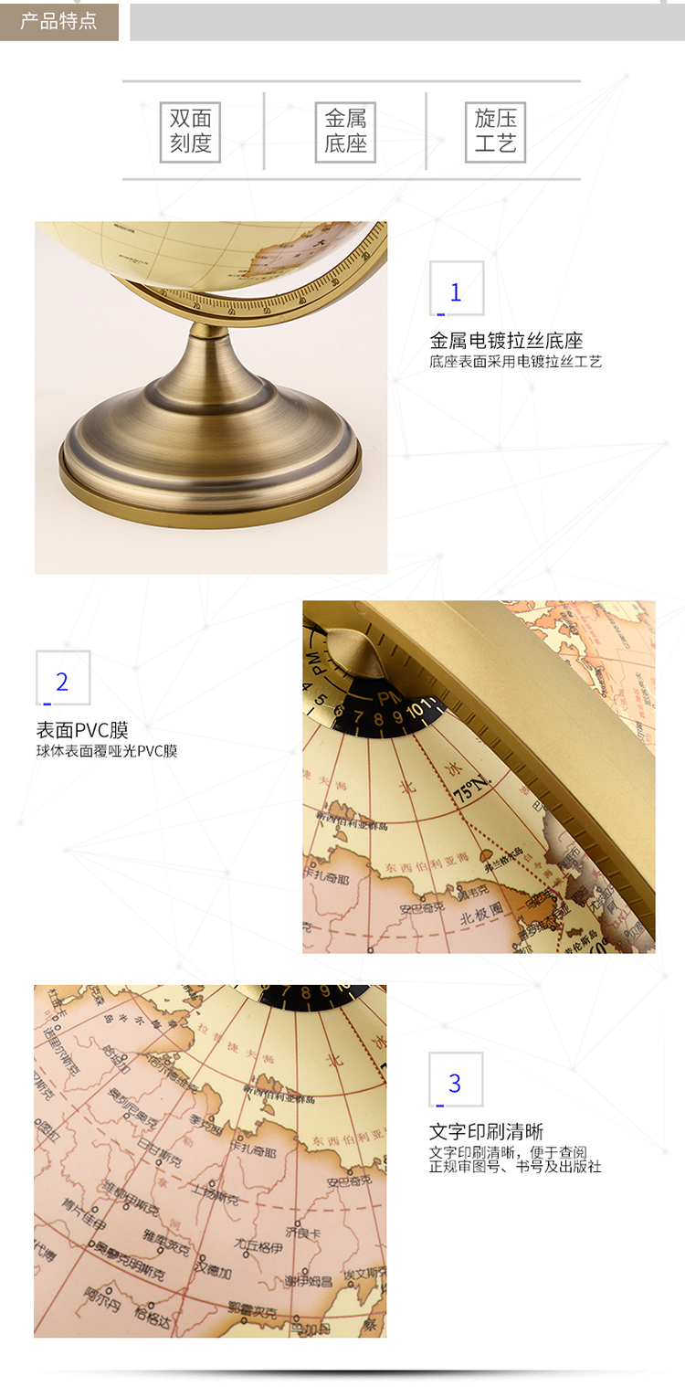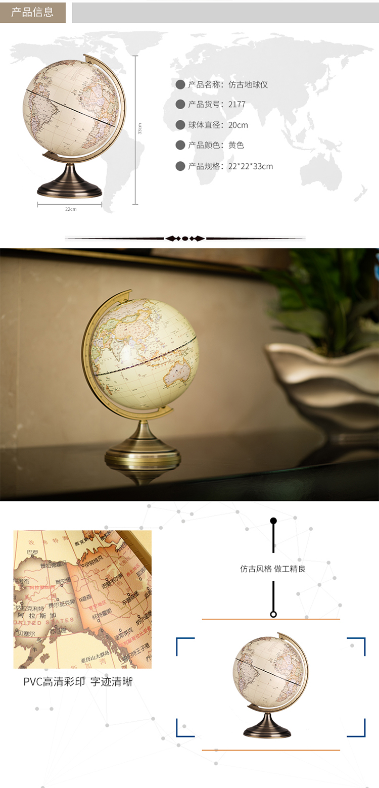 - 商品名称:得力(deli)Ф20cm双面刻度仿古世界地球仪 商务礼品办公居家摆设 黄色2177