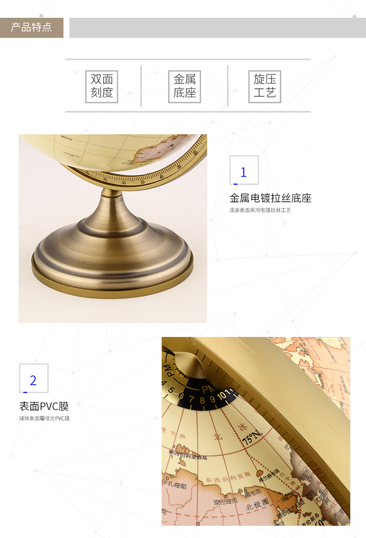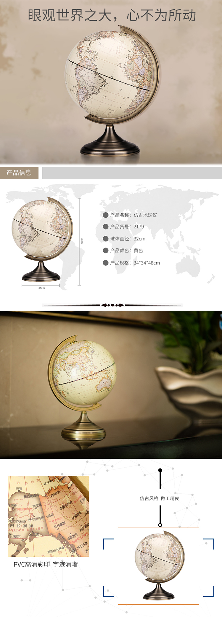 - 商品名称:得力(deli)Ф32cm双面刻度仿古世界地球仪 商务礼品办公居家摆设 黄色2179