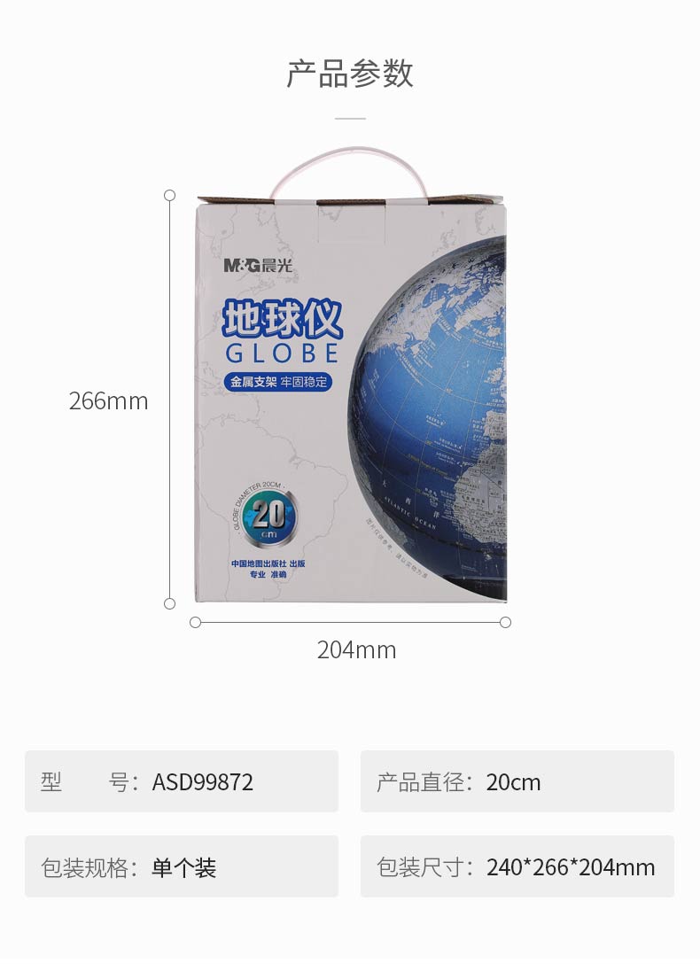 - 商品名称:晨光(M&G)文具20cm高档地球仪 金属弓形固定架 教学研究办公桌面摆件 单个装ASD99872
