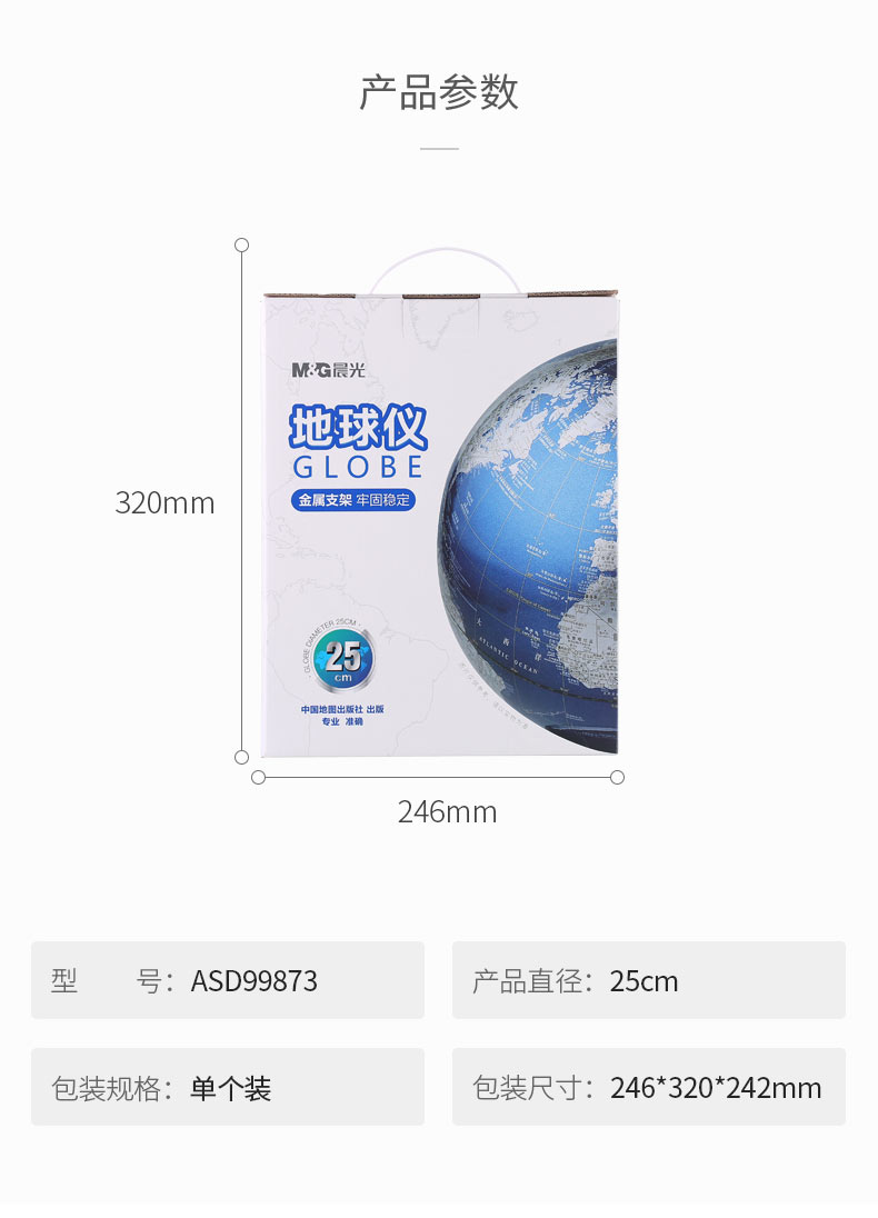 - 商品名称:晨光(M&G)文具25cm高档金属地球仪 弓形固定架 教学研究办公桌面摆件 单个装ASD99873