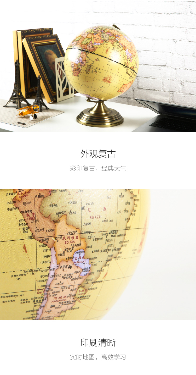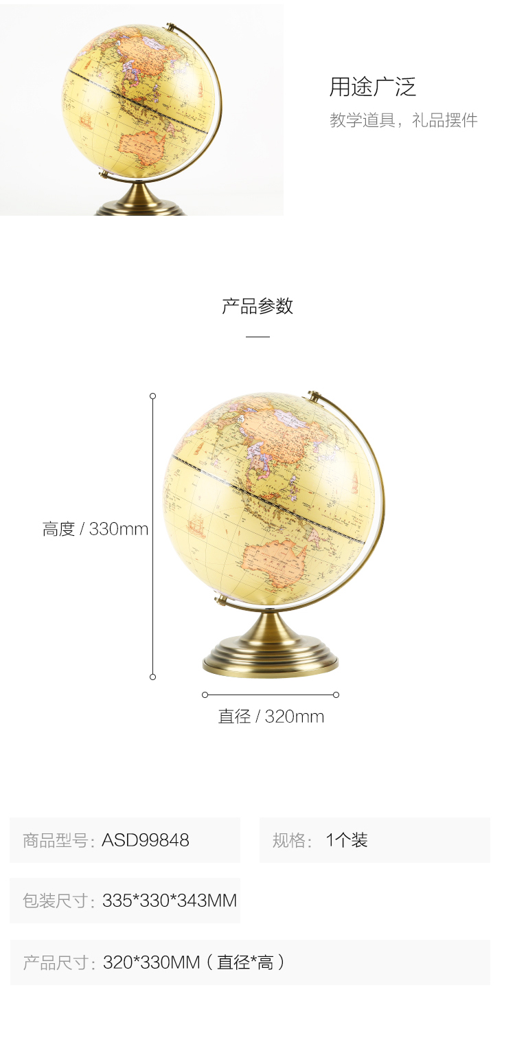 - 商品名称:晨光(M&G)文具32cm仿古地球仪 金属固定架 教学研究办公桌面摆件 单个装ASD99848