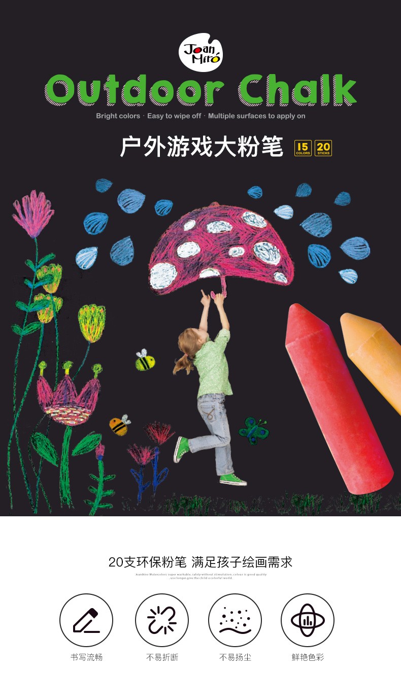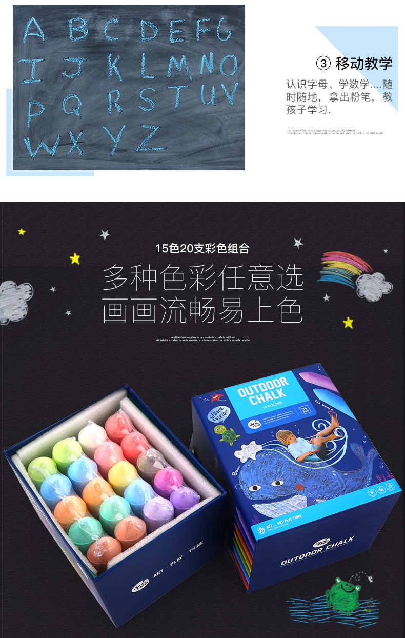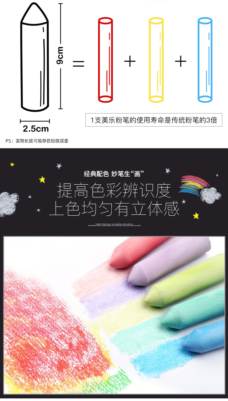 - 商品名称:美乐 粉笔无尘彩色儿童安全户外粗粉笔 15色20支儿童粉笔幼儿园