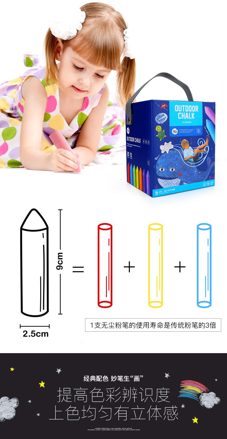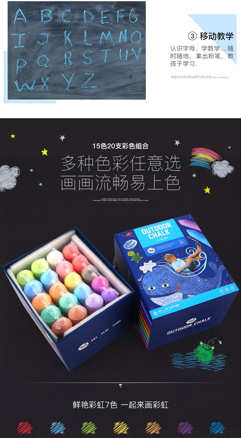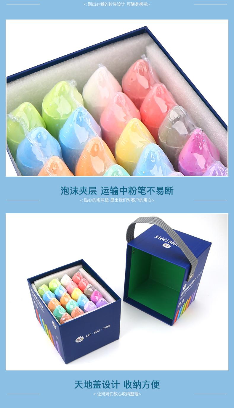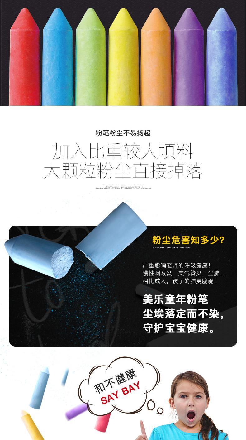 - 商品名称:美乐 粉笔无尘彩色安全户外粗粉笔 粉笔幼儿园家用黑板小可水洗涂鸦画笔宝彩色大号粗粉笔 户外大粉笔15色20支