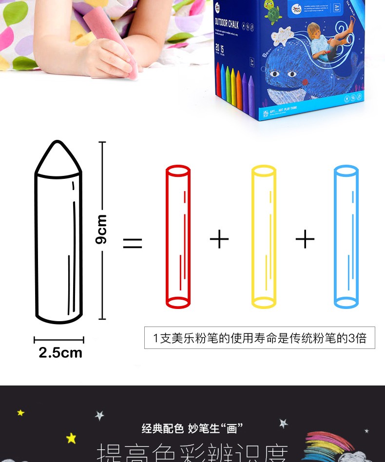 - 商品名称:美乐Joanmiro彩色无尘粉笔 儿童安全无毒家用黑板绘画可水洗 20支15色大粉笔