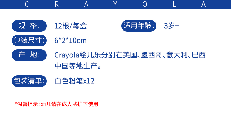 - 商品名称:绘儿乐(Crayola)12支装白色无尘粉笔公考国考事业单位教师黑板粉笔50-1402