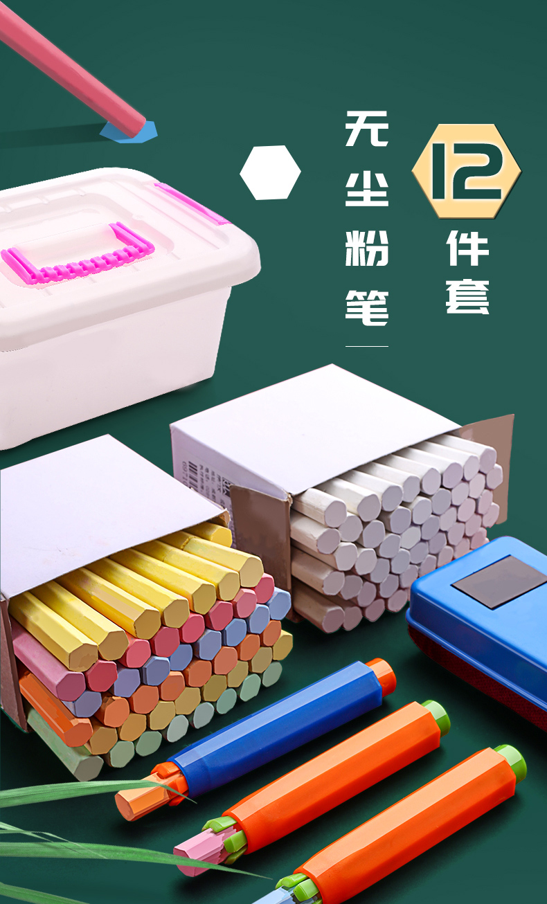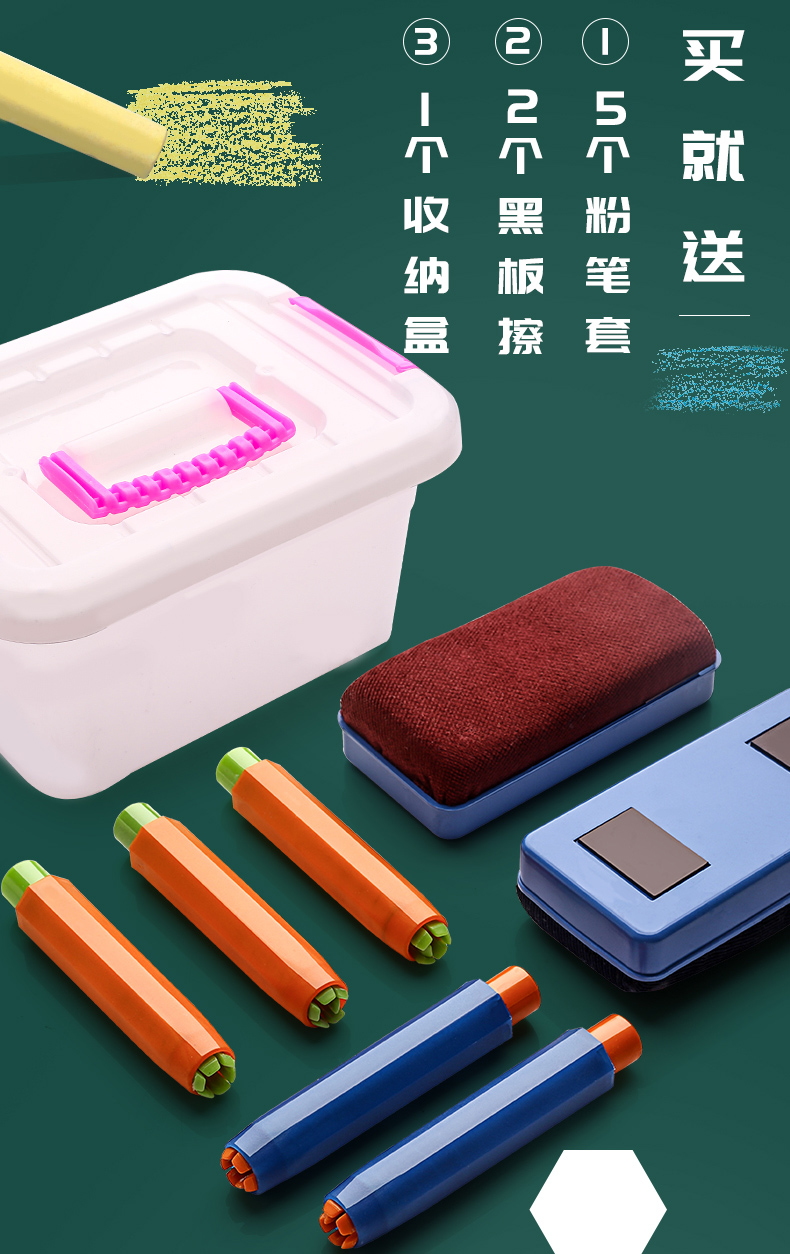 - 商品名称:金值 JK4003 无尘粉笔彩色白色黑板报幼儿园笔擦家用黑板擦儿童画板教学画画专用六角粉笔夹套装