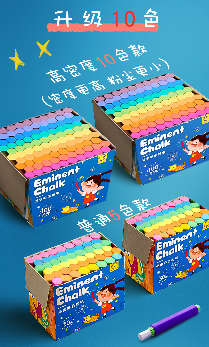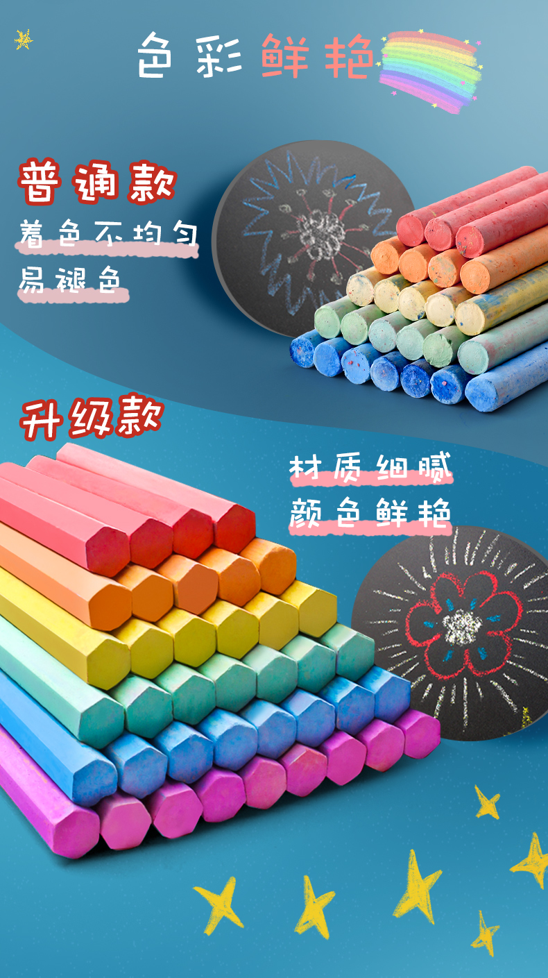 商品名称:金值混色粉笔套装多色无毒黑板报专用儿童家用幼儿园涂鸦教学无尘粉尘白色普通六角水溶性环保鲜艳教师软