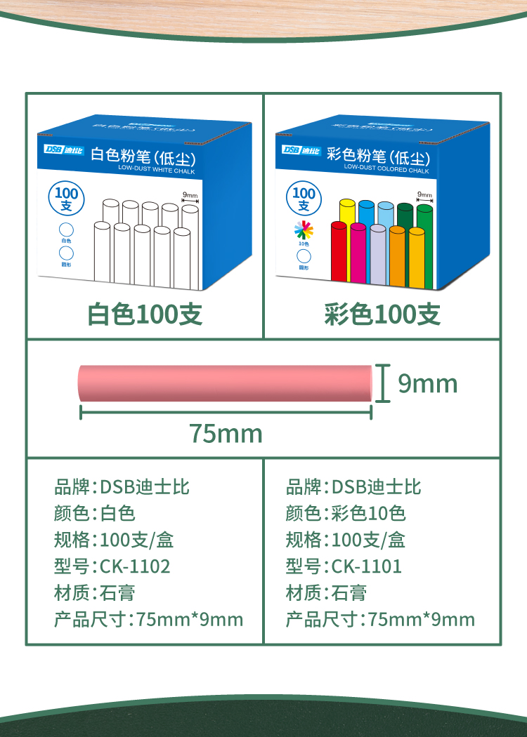 - 商品名称:DSB白色圆形粉笔普通低尘粉笔儿童涂鸦笔绿板黑板报专用笔100支*20盒 CK-1104