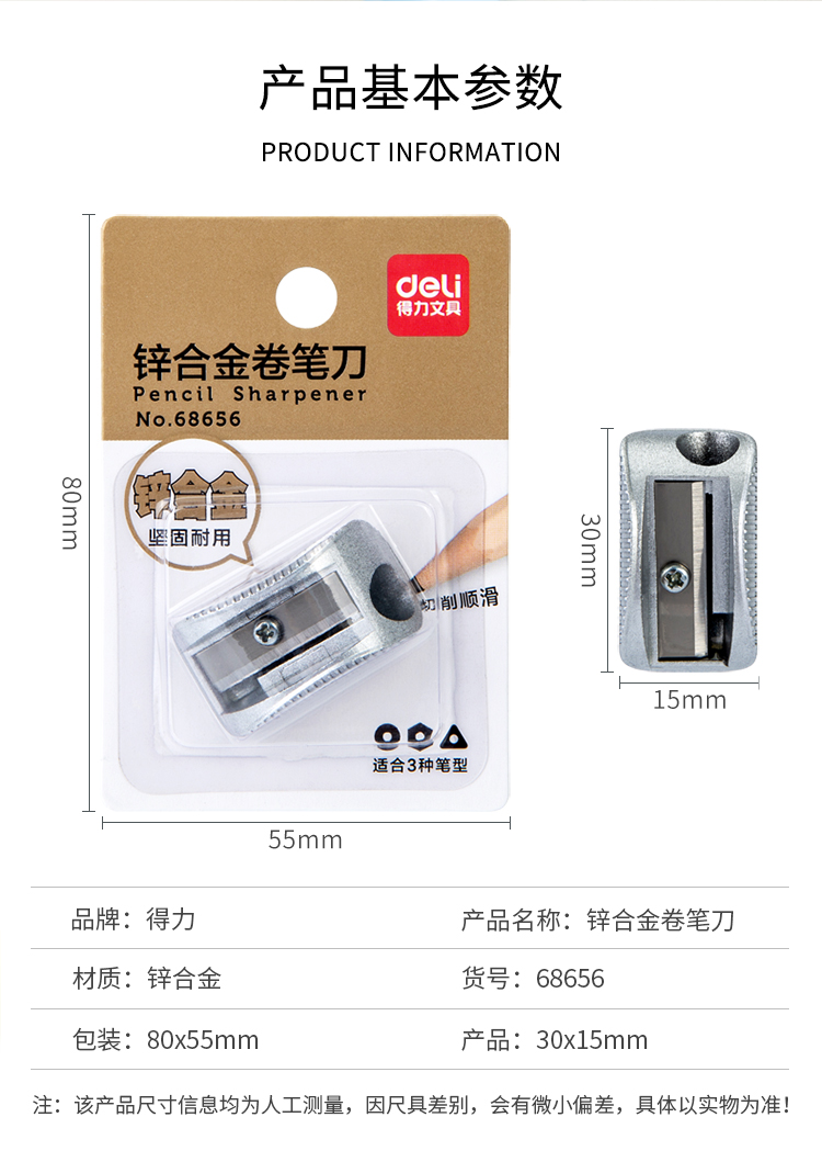 - 商品名称:得力(deli)锌合金学生卷笔刀 锋利耐用铅笔削笔刀 削笔器 银色 68656