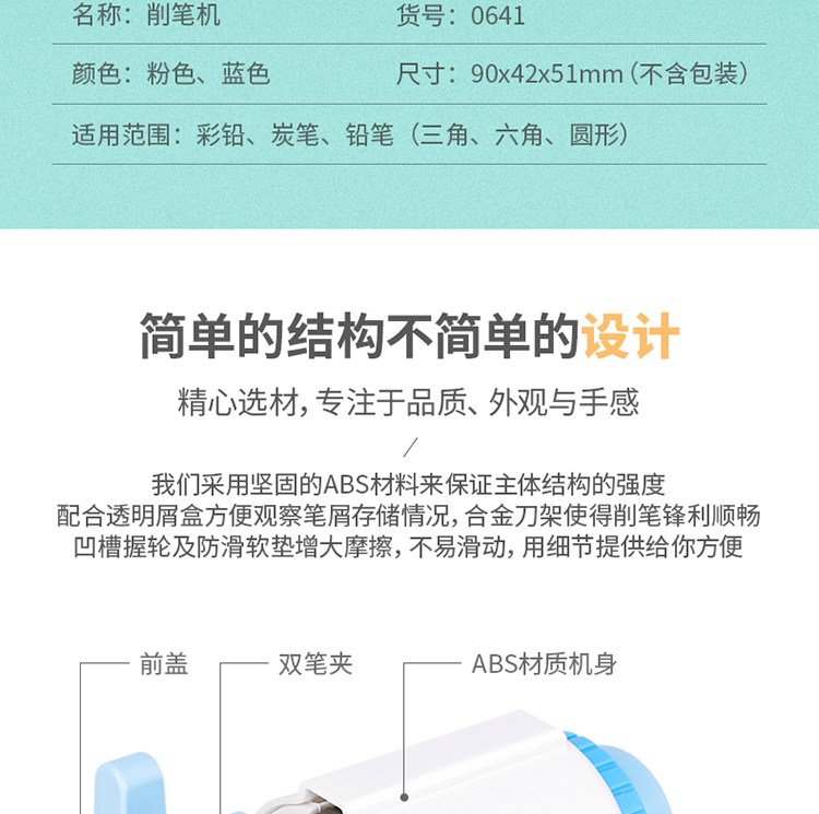 - 商品名称:得力(deli)经典学生削笔机/铅笔削笔器/卷笔刀/转笔刀 蓝色0641