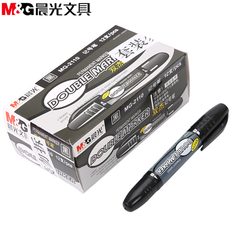 - 商品名称:晨光(M&G)粗细杆双头多用物流油性记号笔绘画勾线笔描线笔光盘笔12支装 MG2110黑色(粗杆大双头)